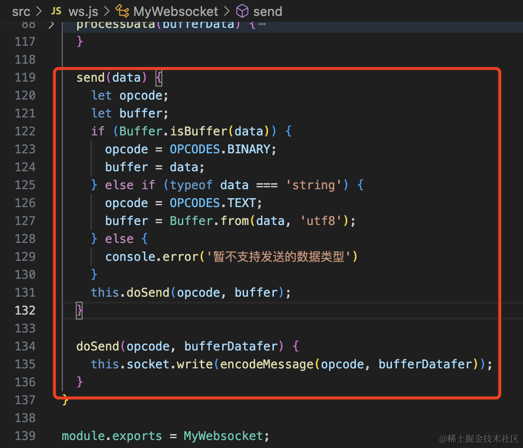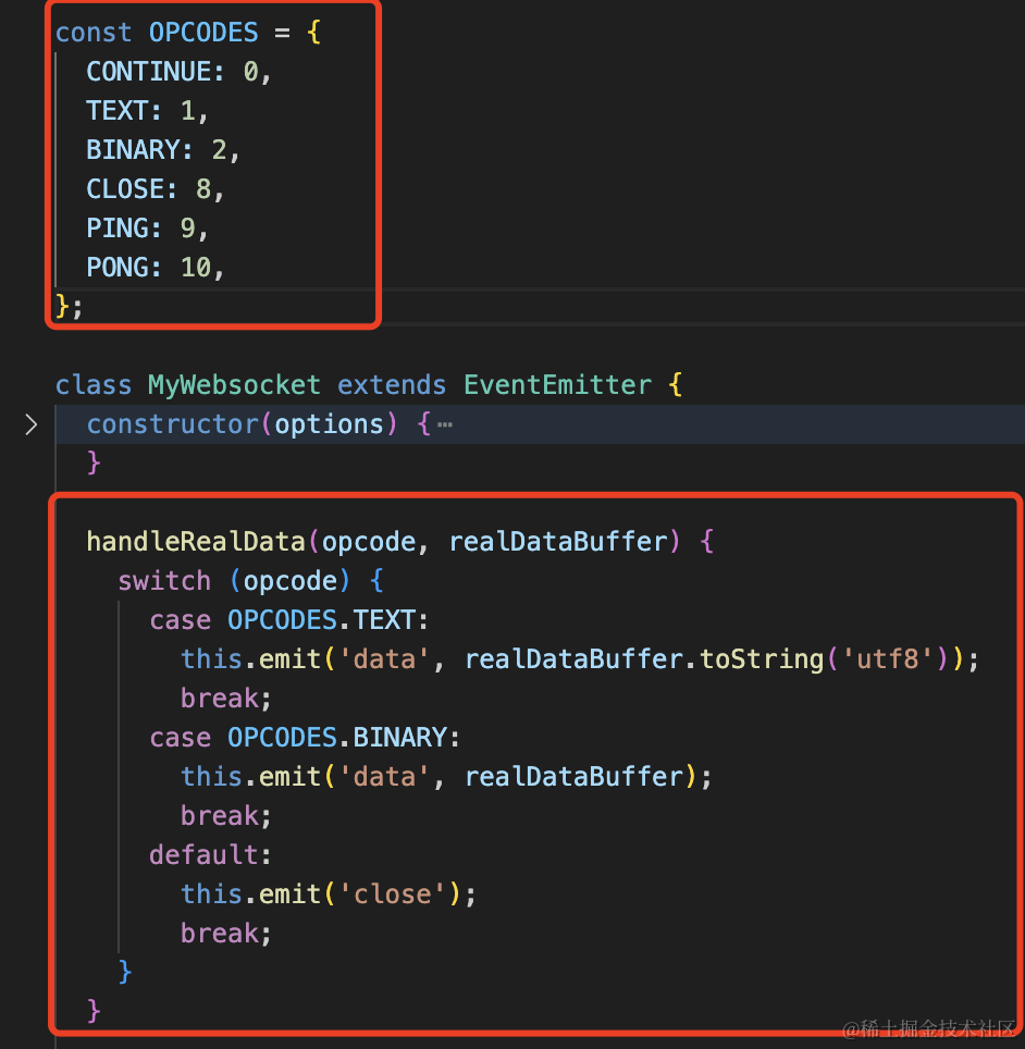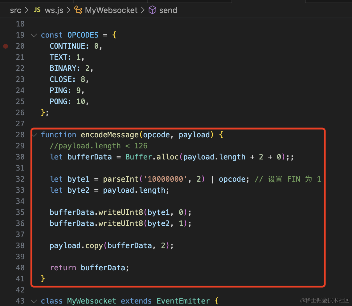 在 src/ws.js 定义个 MyWebSocket 的 class: