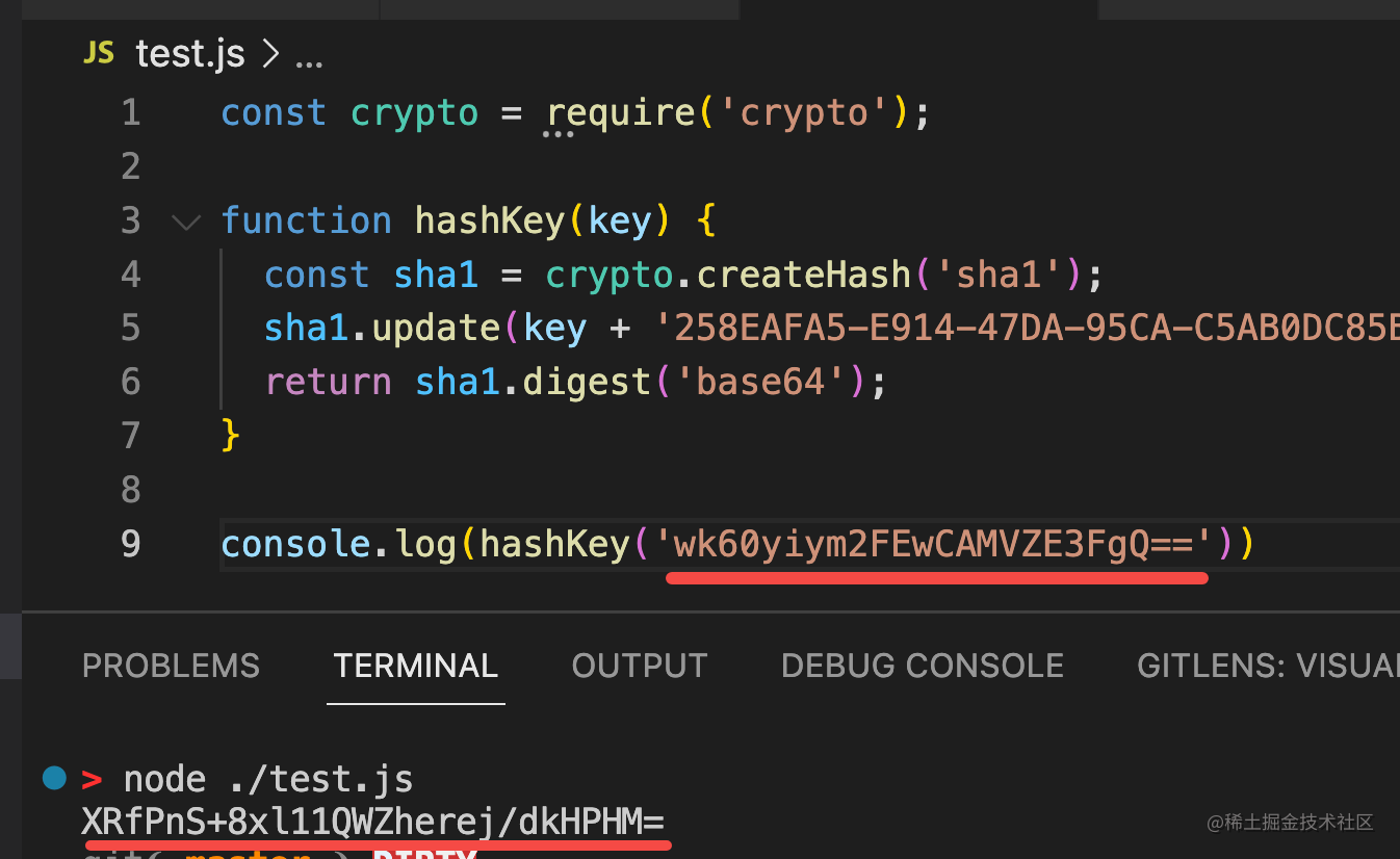 也就是用客户端传过来的 key,加上一个固定的字符串,经过 sha1 加密之后,转成 base64 的结果。