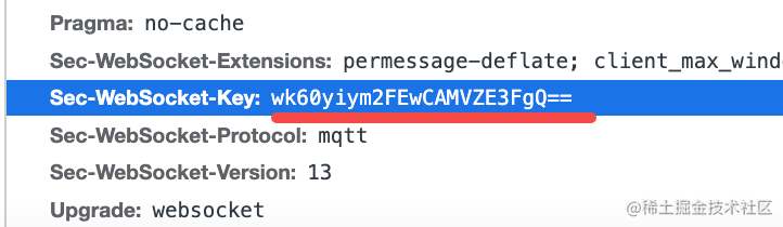 这个 Sec-WebSocket-Key 是 wk60yiym2FEwCAMVZE3FgQ==