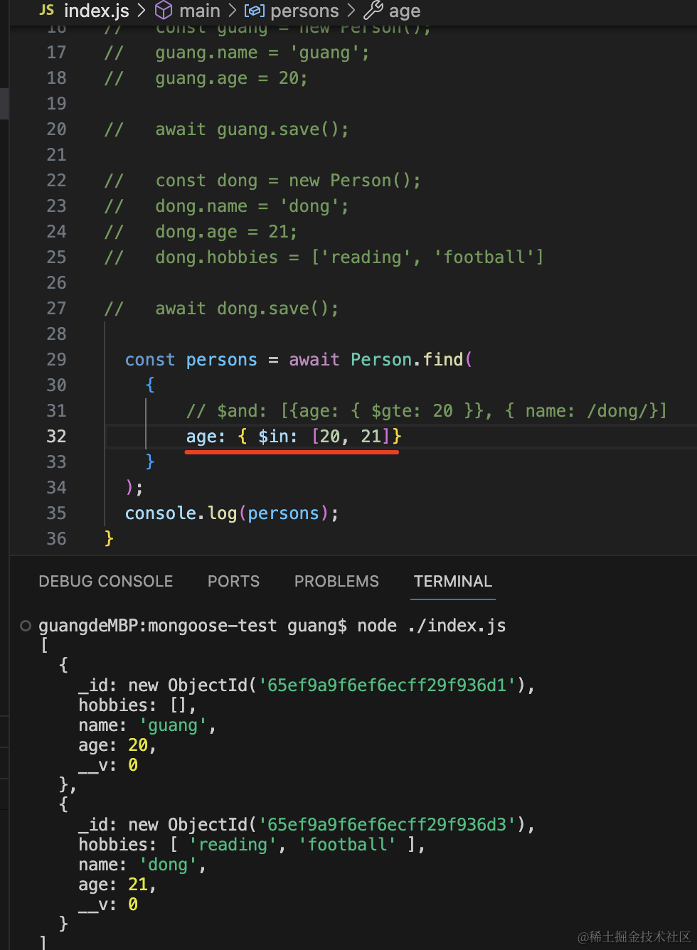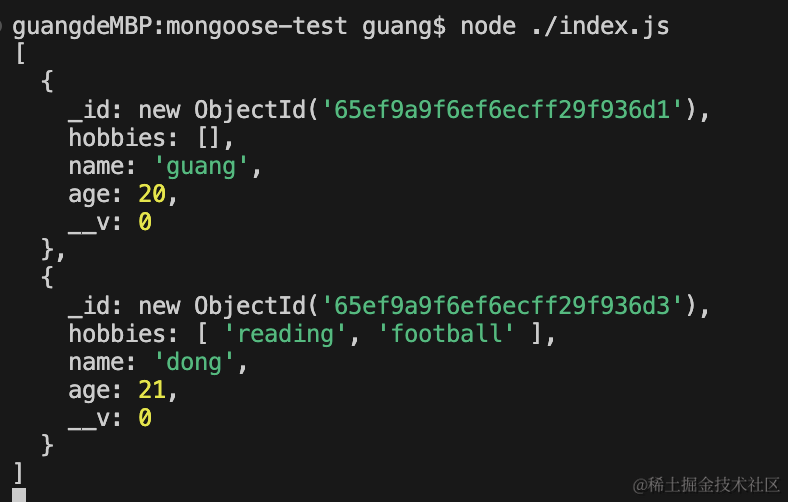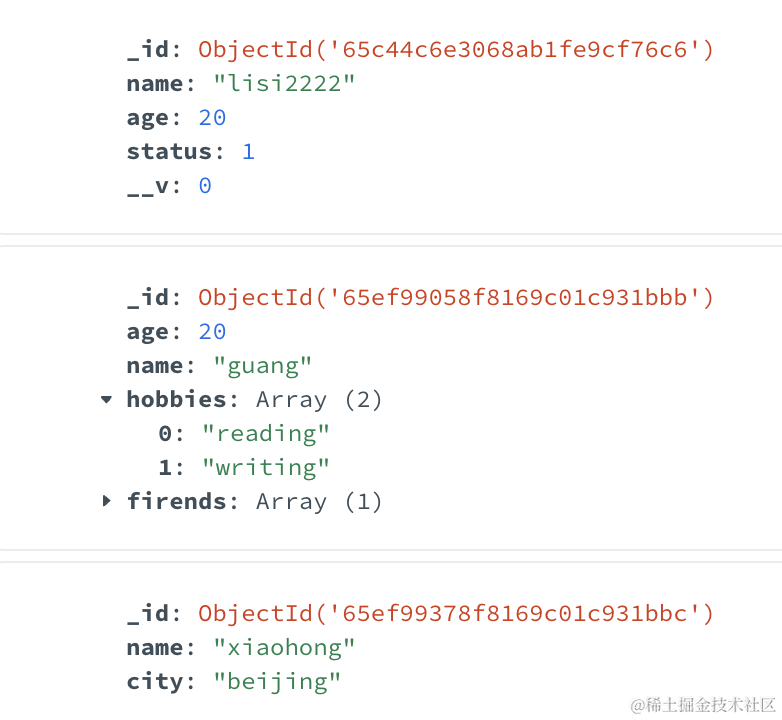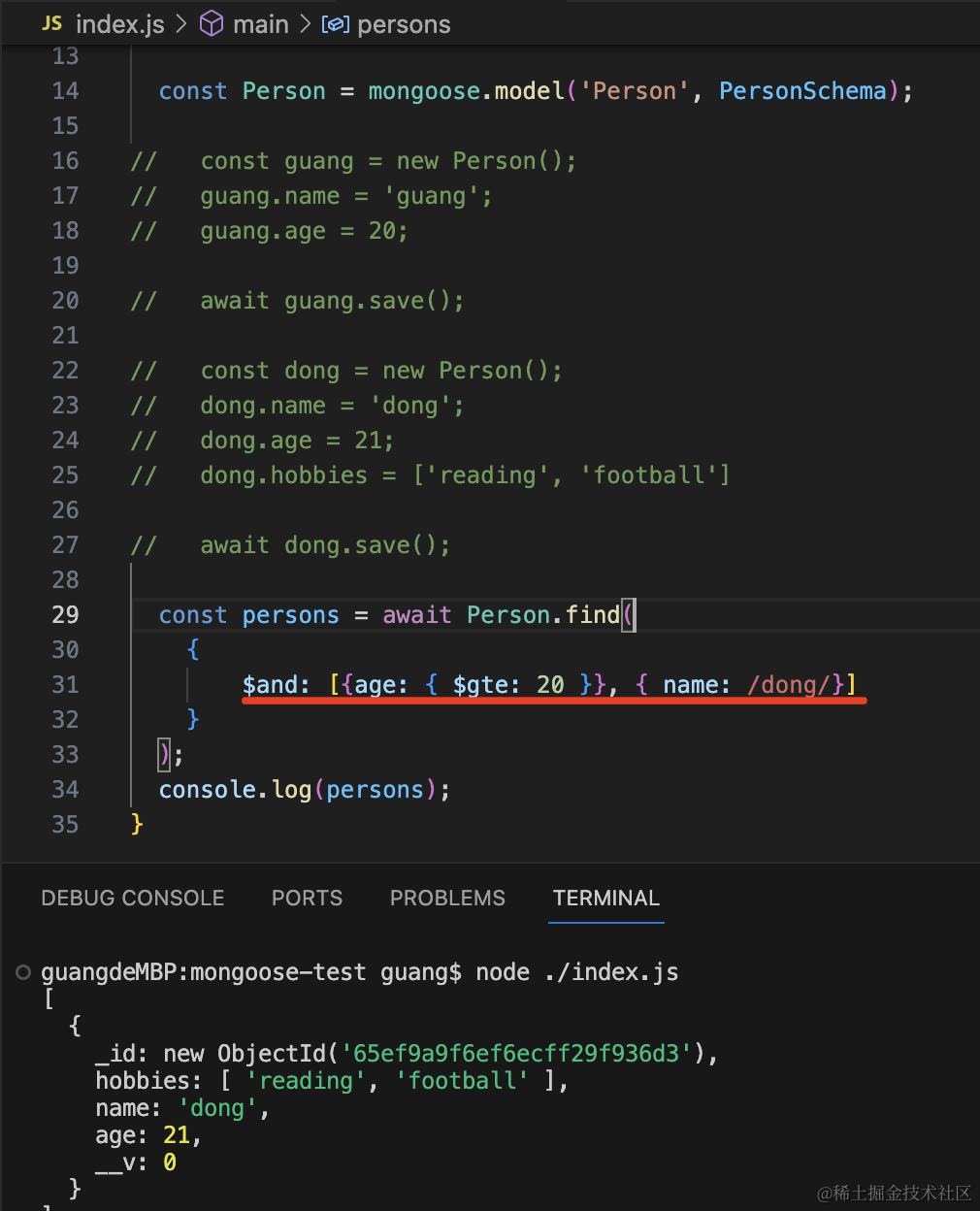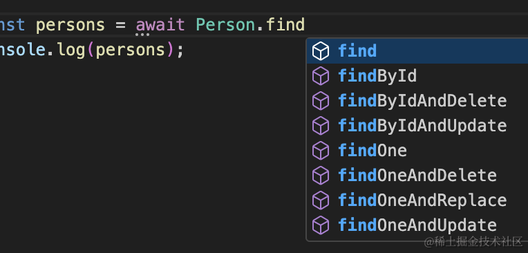 而且在 mongoose 里查询的语法和上节我们学的 mongodb 的 api 一模一样: