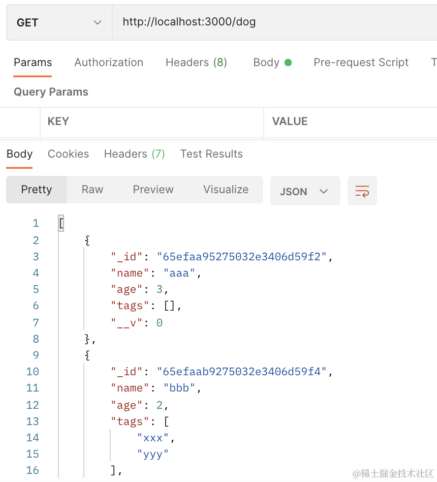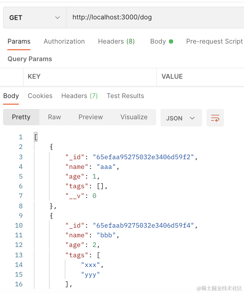 我们学习了用 mongoose 操作 MongoDB 以及在 Nest 里集成 mongoose。