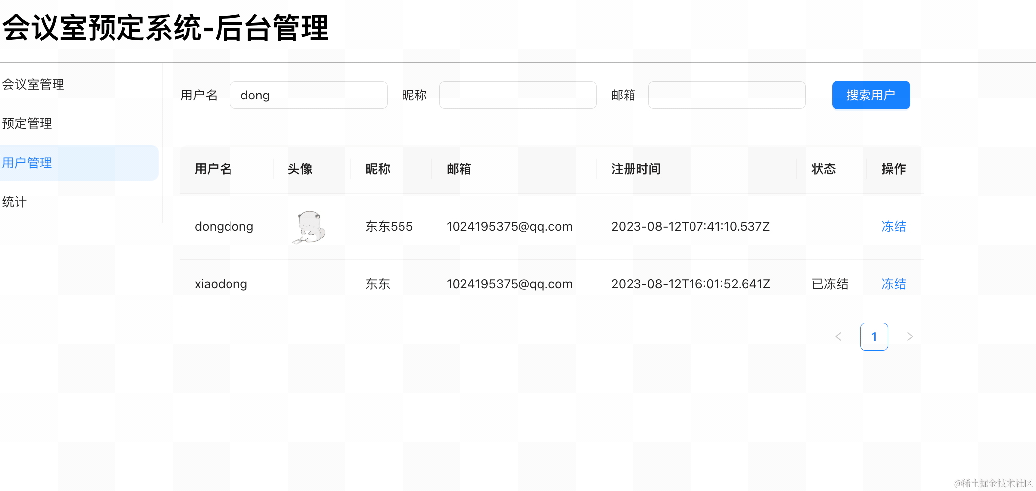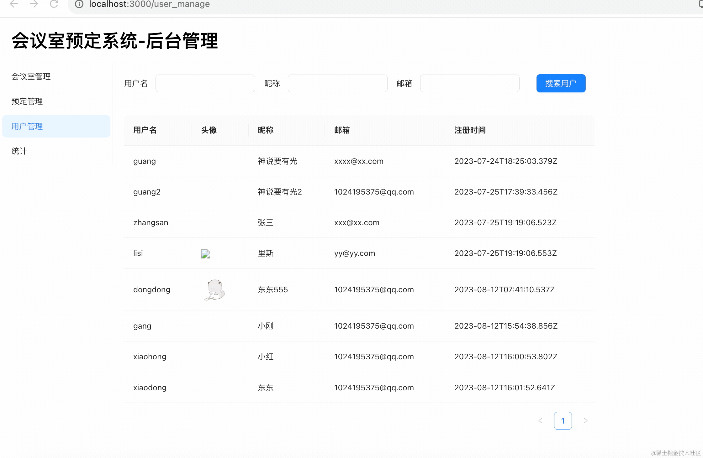 使用 table 组件来渲染列表,通过 useEffect 在 pageNo、pageSize 改变的时候自动重发请求。