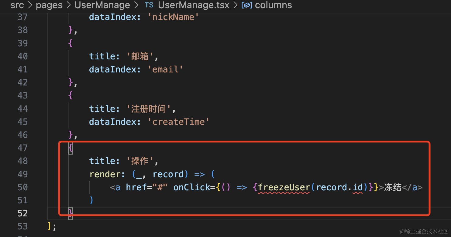把 columns 移到组件内,用 useMemo 包裹,这样只会创建一次: