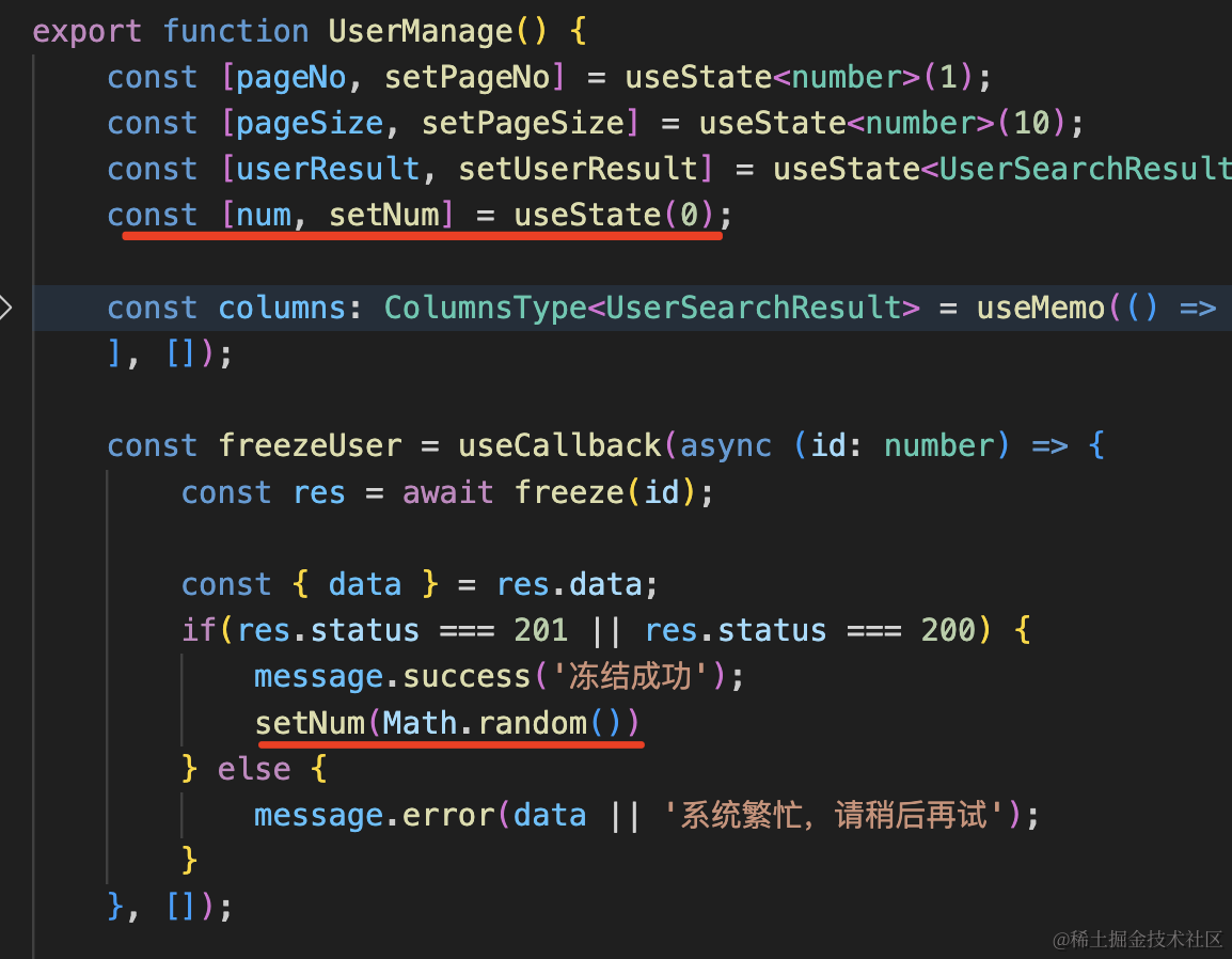 添加一个 num 的 state,冻结之后设置一个随机值: