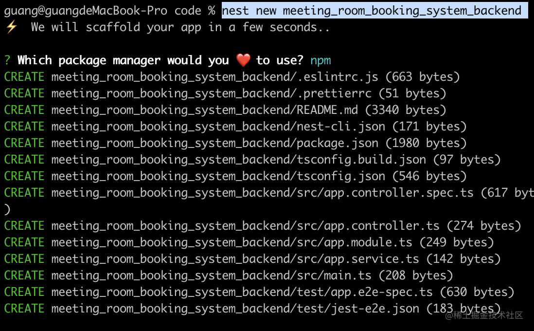 首先创建个 nest 项目: