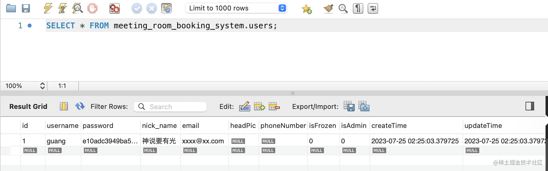 这时可以在数据库里看到这条记录: