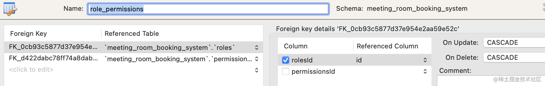 角色-权限中间表 role_permissions