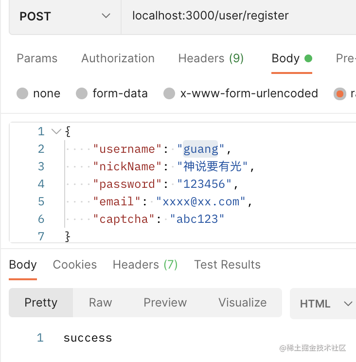 然后 postman 里测试下: