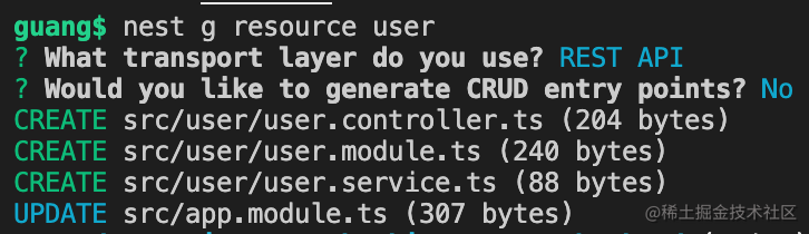 nest g resource user