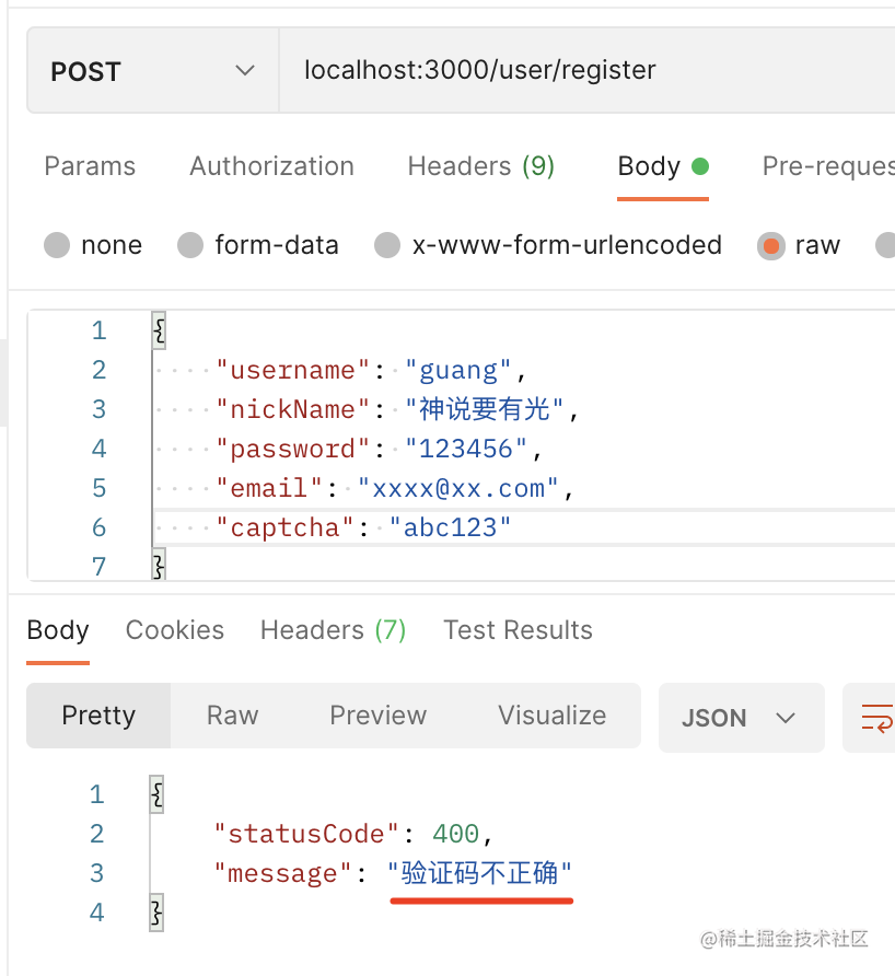 throw new HttpException('验证码不正确', HttpStatus.BAD_REQUEST);