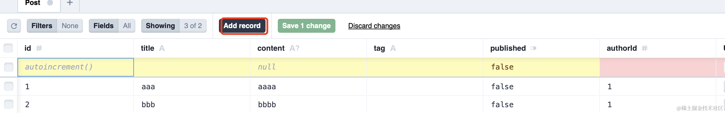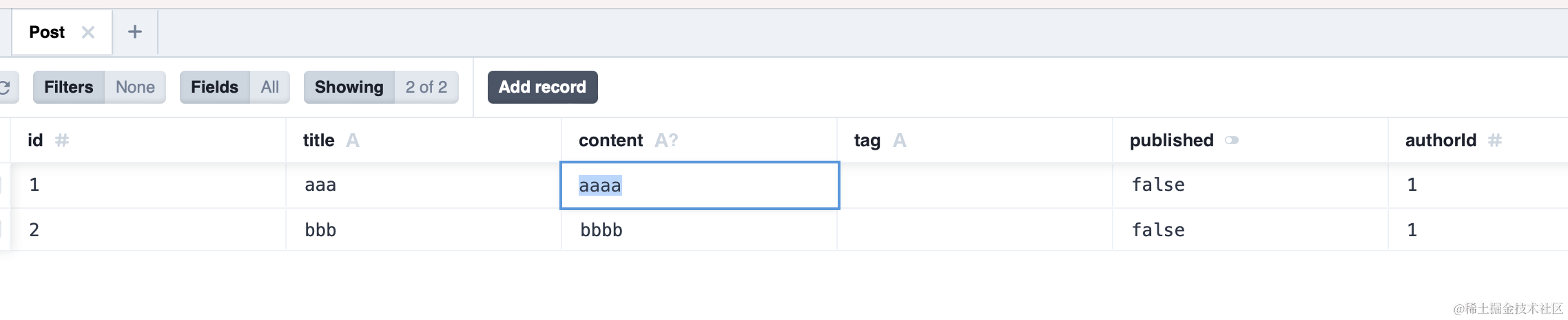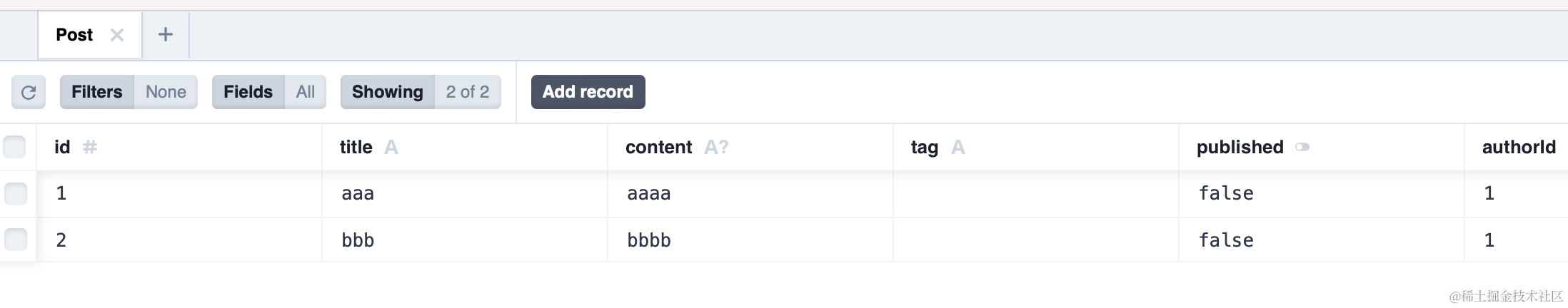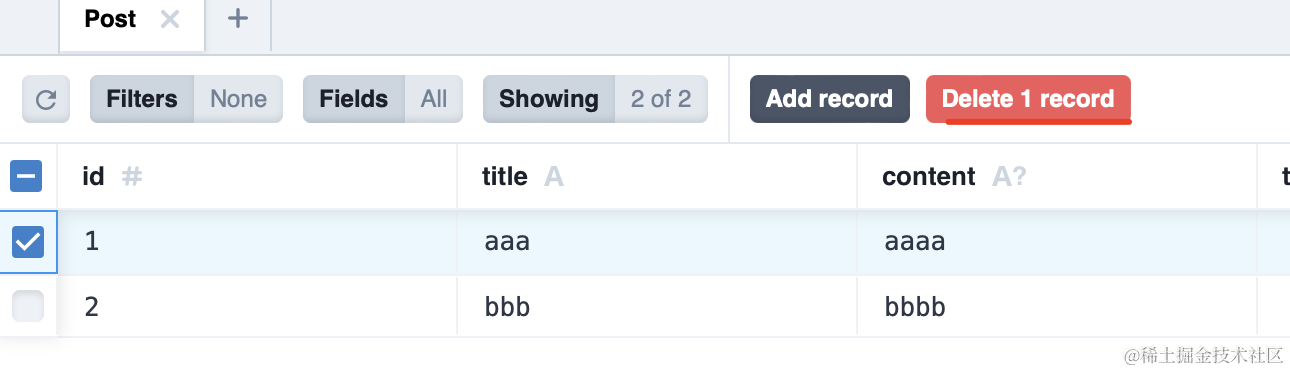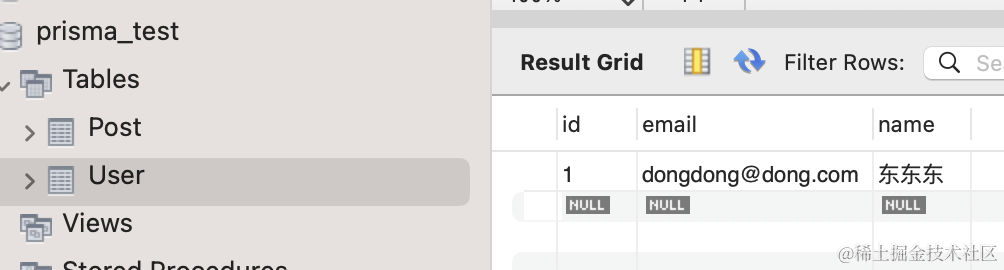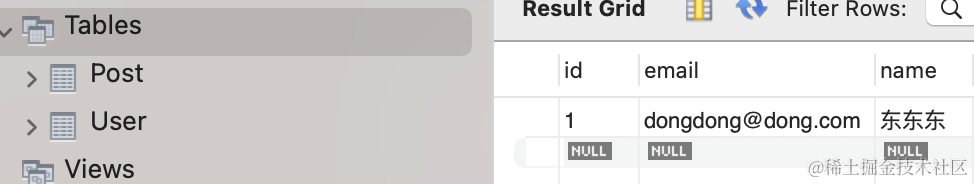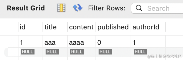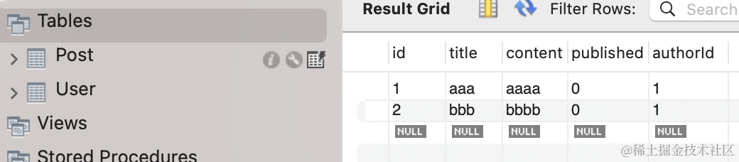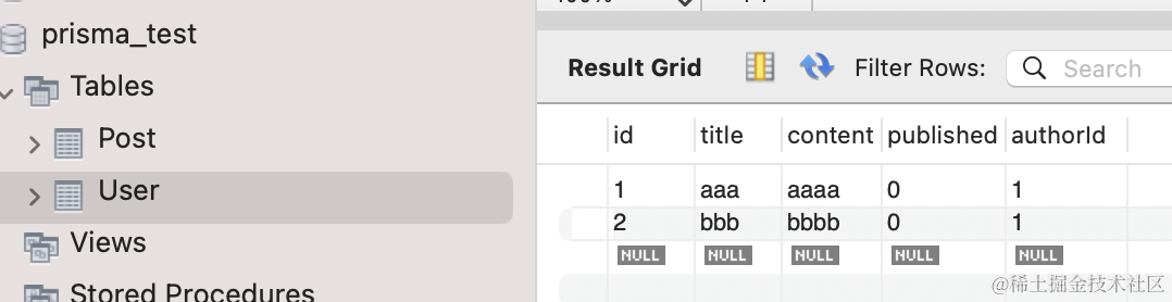 然后去 mysql workbench 里看一下,确实 id 为 2 的 Post 数据没有了: