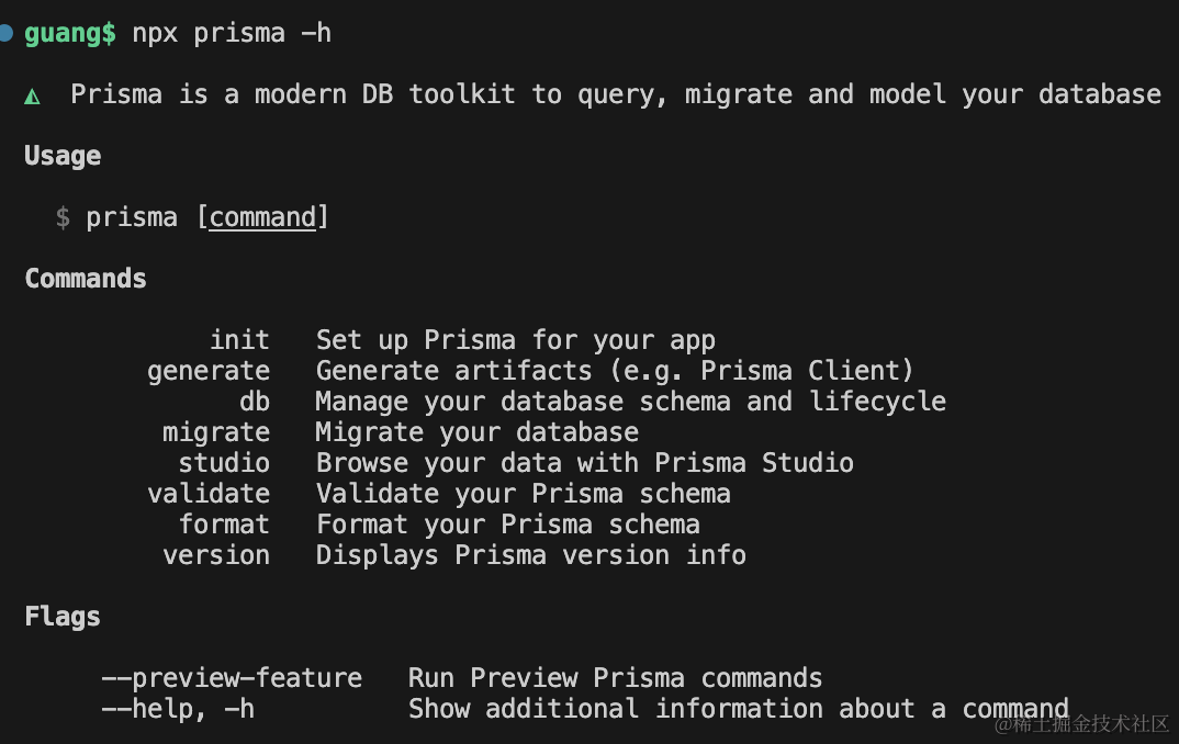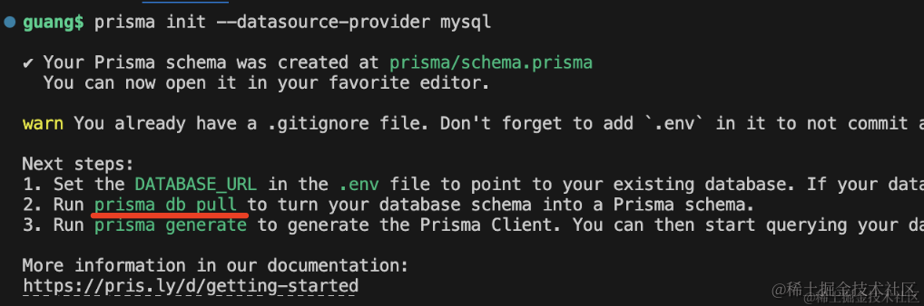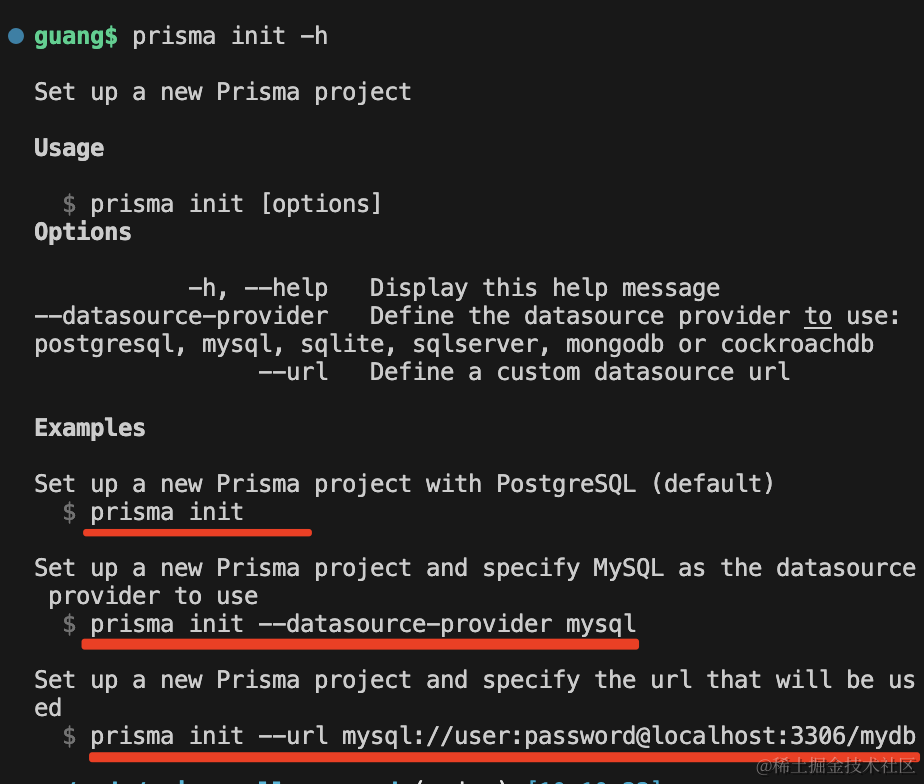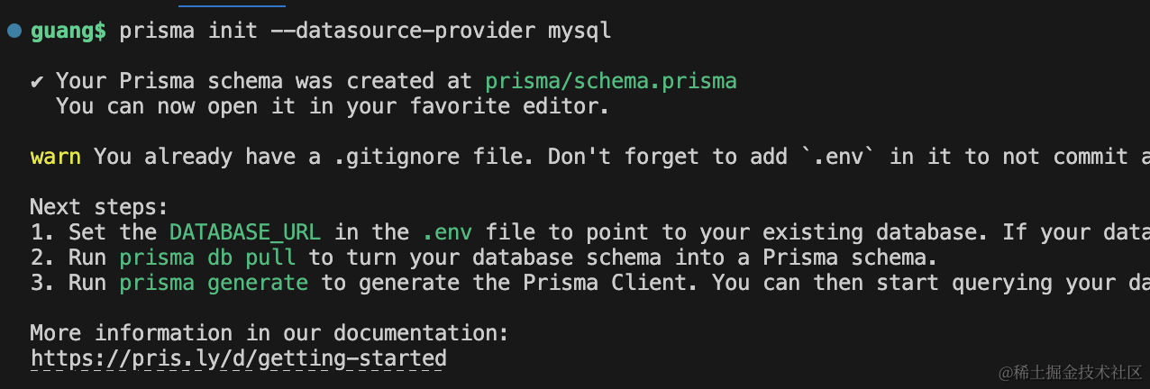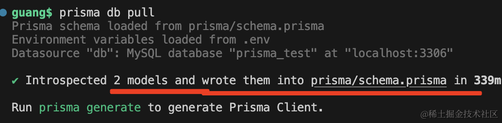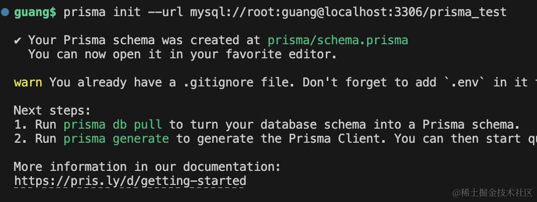 prisma init --url mysql://root:guang@localhost:3306/prisma_test