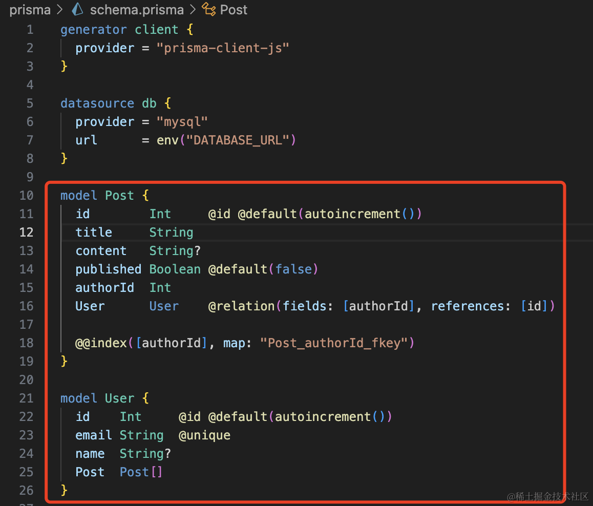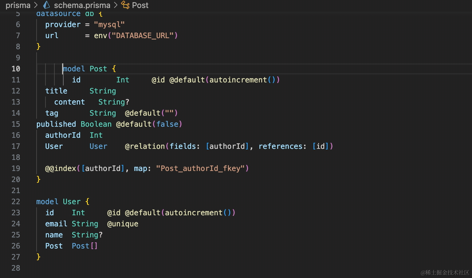 其中,@@index 是定义索引,这里定义了 authorId 的外键索引。