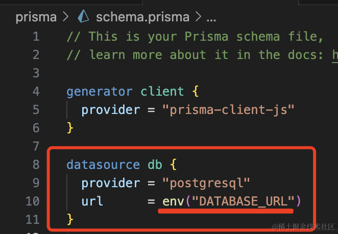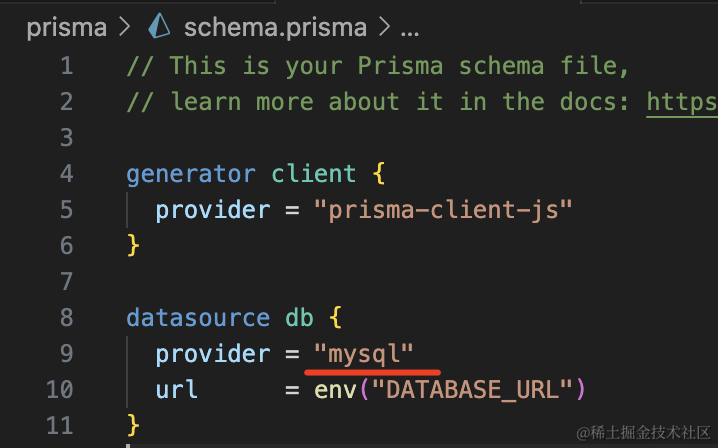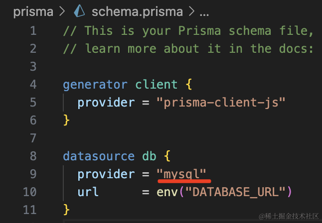 其实就是改这两处的字符串,prisma init 之后自己改也行。
