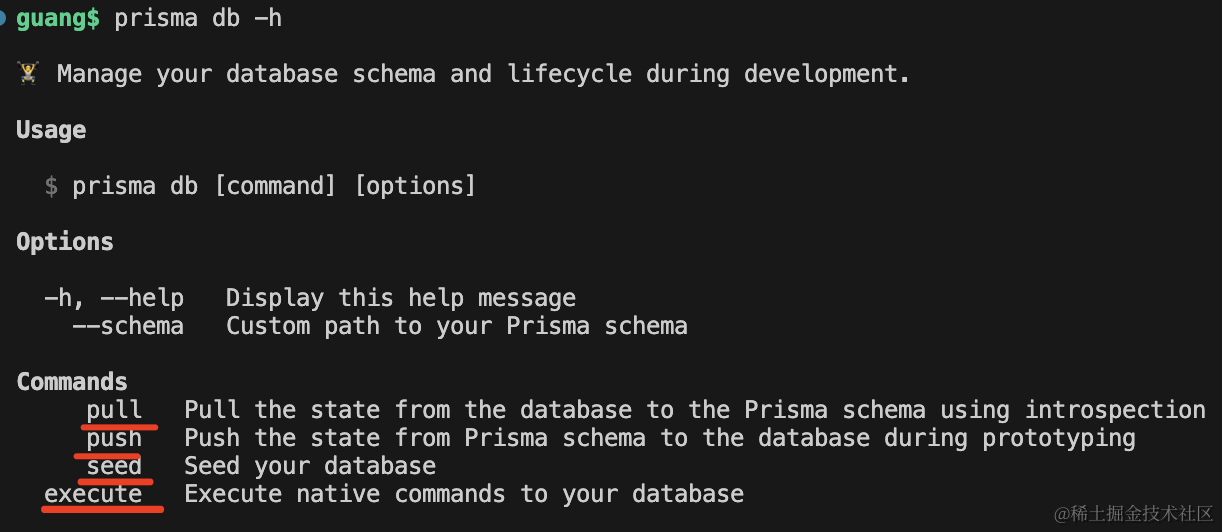 然后是 prisma db execute,这个是用来执行 sql 的。