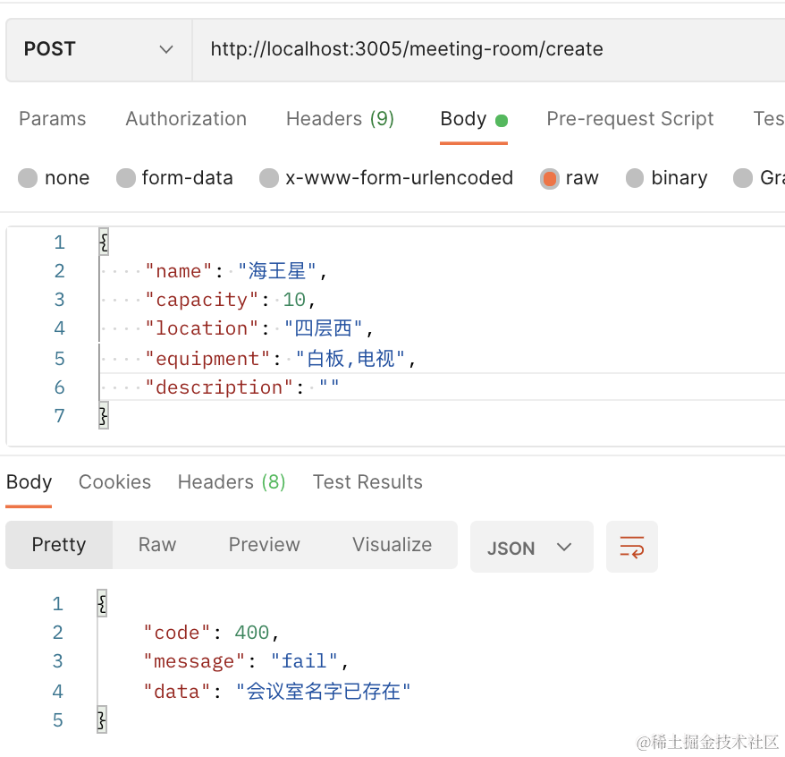 这个会议室名其实应该保持唯一,我们加一下校验逻辑: