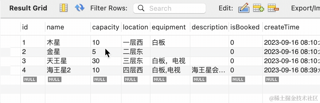 注意,因为 booking 表关联了 meeting-room 表,有外键约束,所以要删除所有的预定之后再去删除会议室。