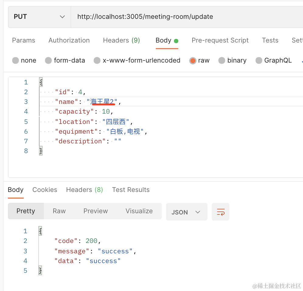 这里的 UpdateMeetingRoomDto 和 CreateMeetingRoomDto 差不多,我们用 PartialType 来复用它的字段: