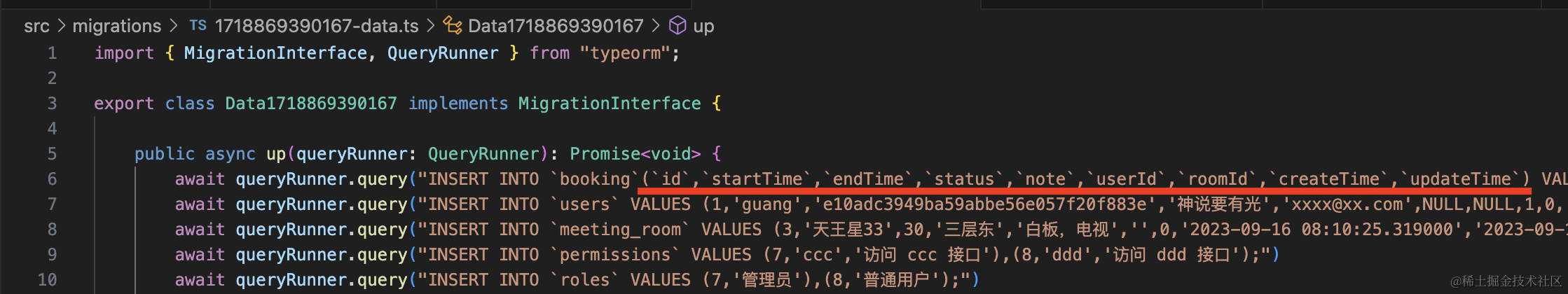 await queryRunner.query("INSERT INTO `permissions` VALUES (7,'ccc','访问 ccc 接口'),(8,'ddd','访问 ddd 接口');")