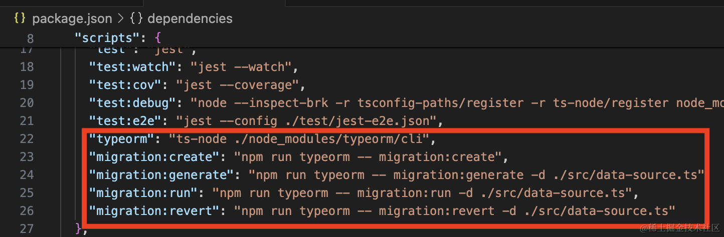 然后我们在项目的 package.json 里加一下 migration 的 npm scripts: