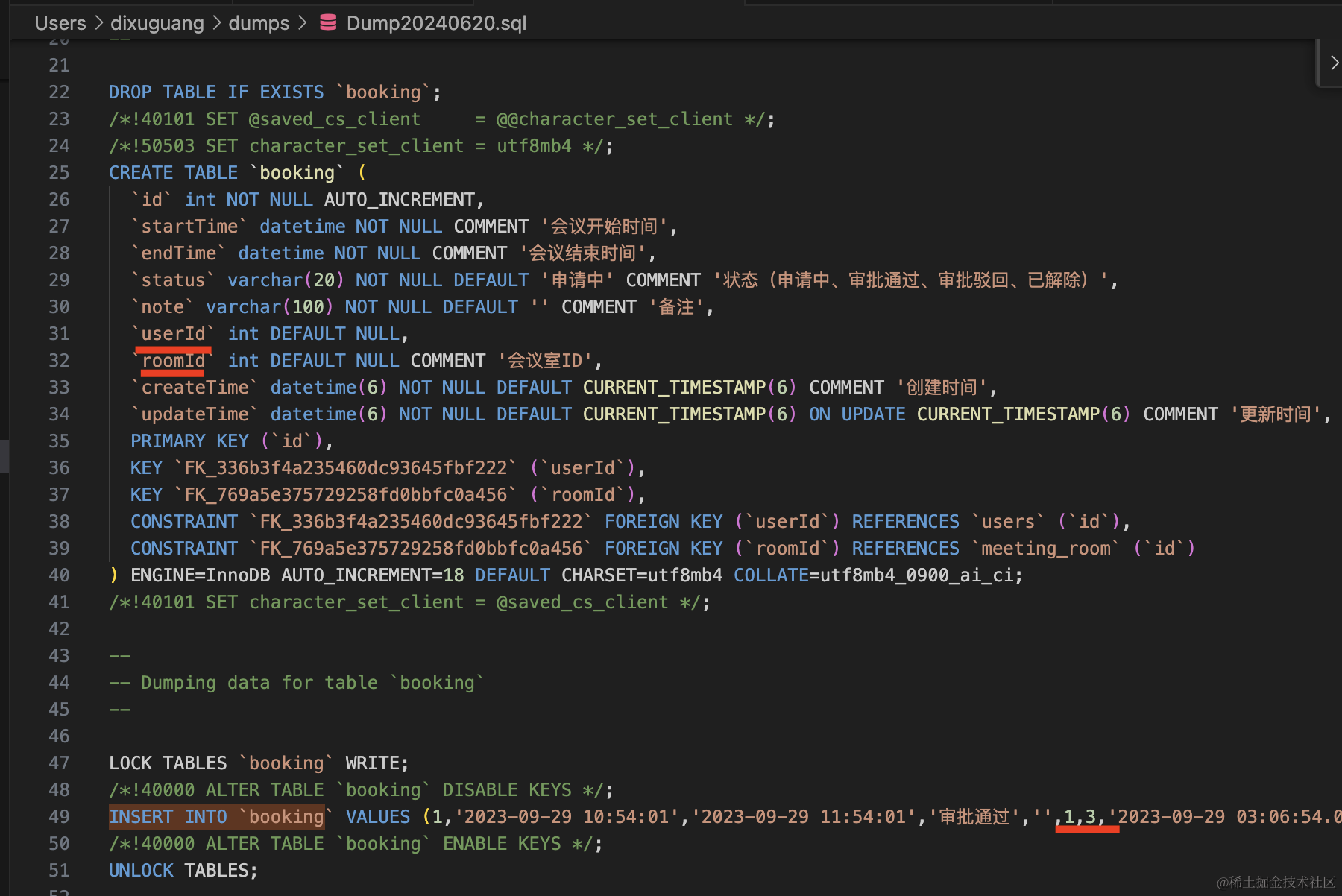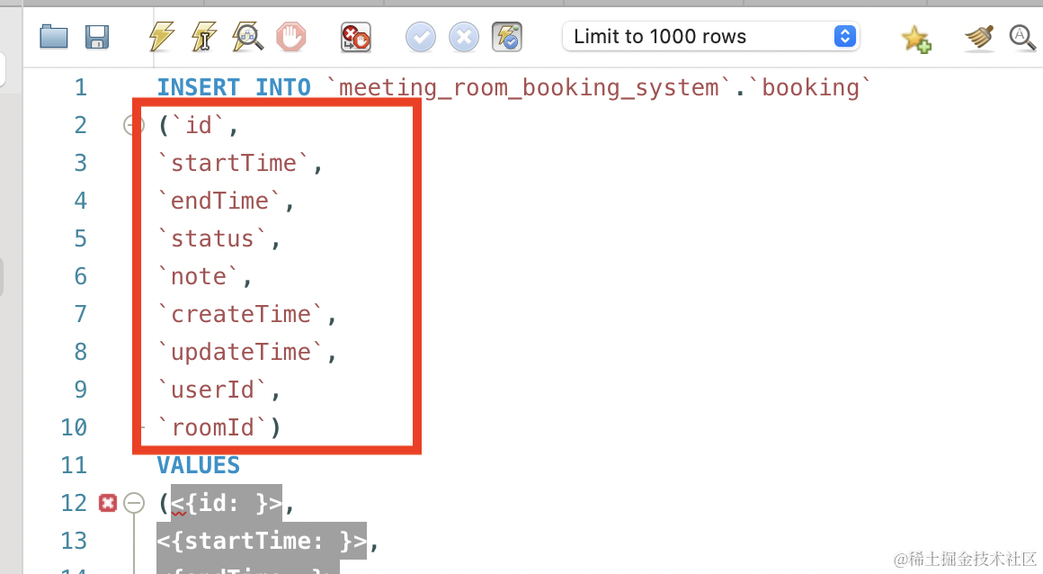 第 6、7 列是 userId、roomId,和 insert into 语句对应。