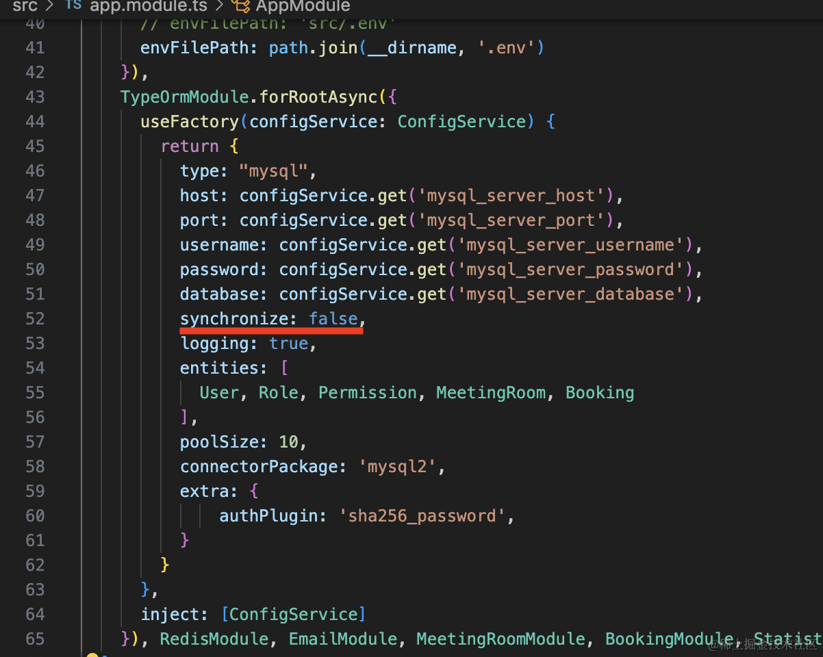 synchronize 指定为 false,顺便把 AppModule 里的 synchronize 也改为 false。