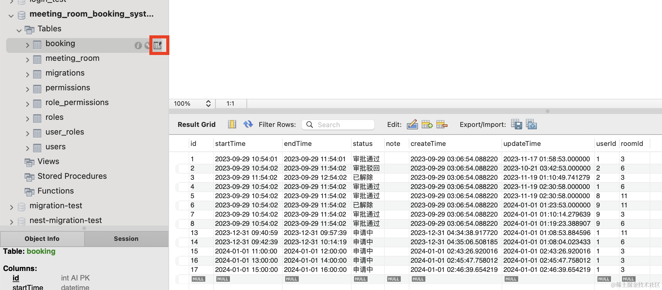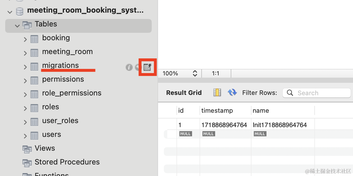 执行完这两个 migration 之后,表和数据就都有了,就可以跑 Nest 项目了。