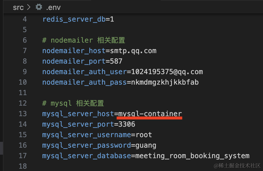 而 migration 的时候我们是需要真实的 host 的地址的,所以单独搞一个 .env 文件来配置。