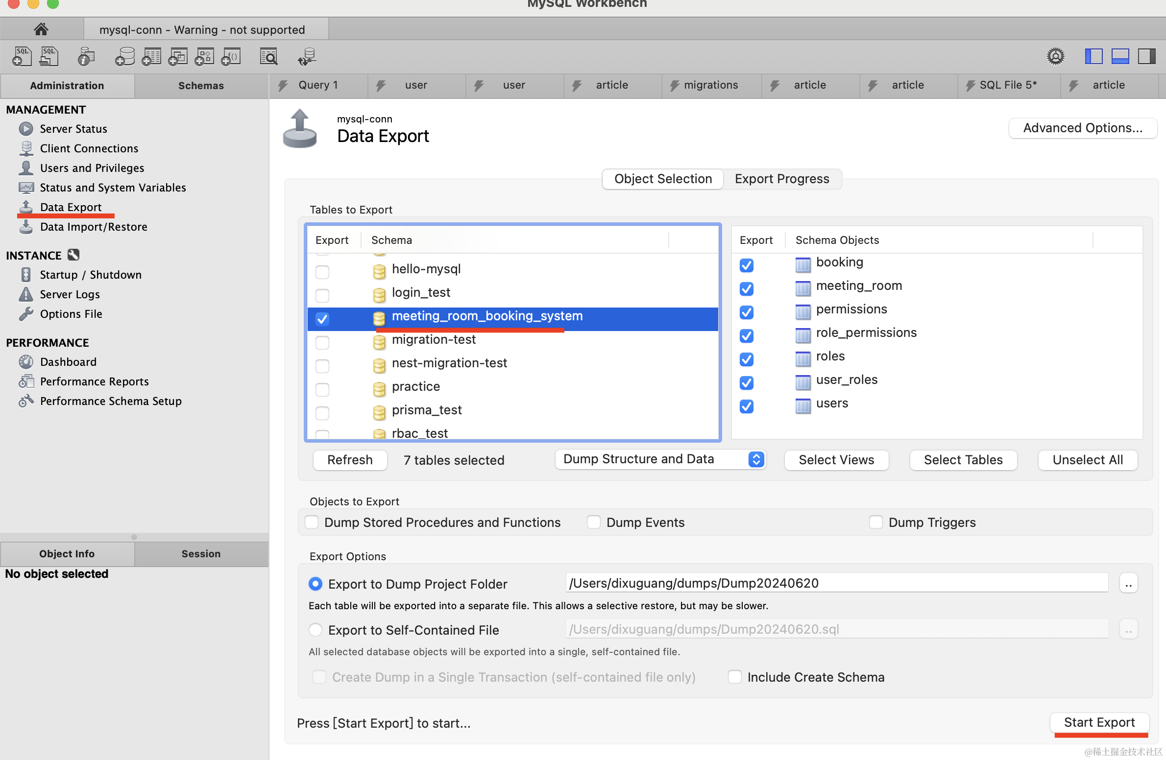 首先,我们在 mysql workbench 里把现有的数据导出。