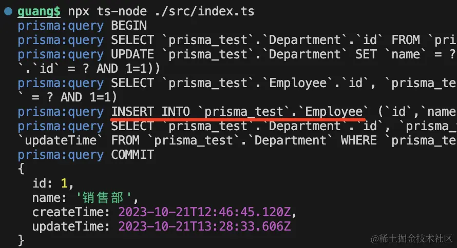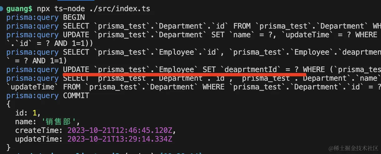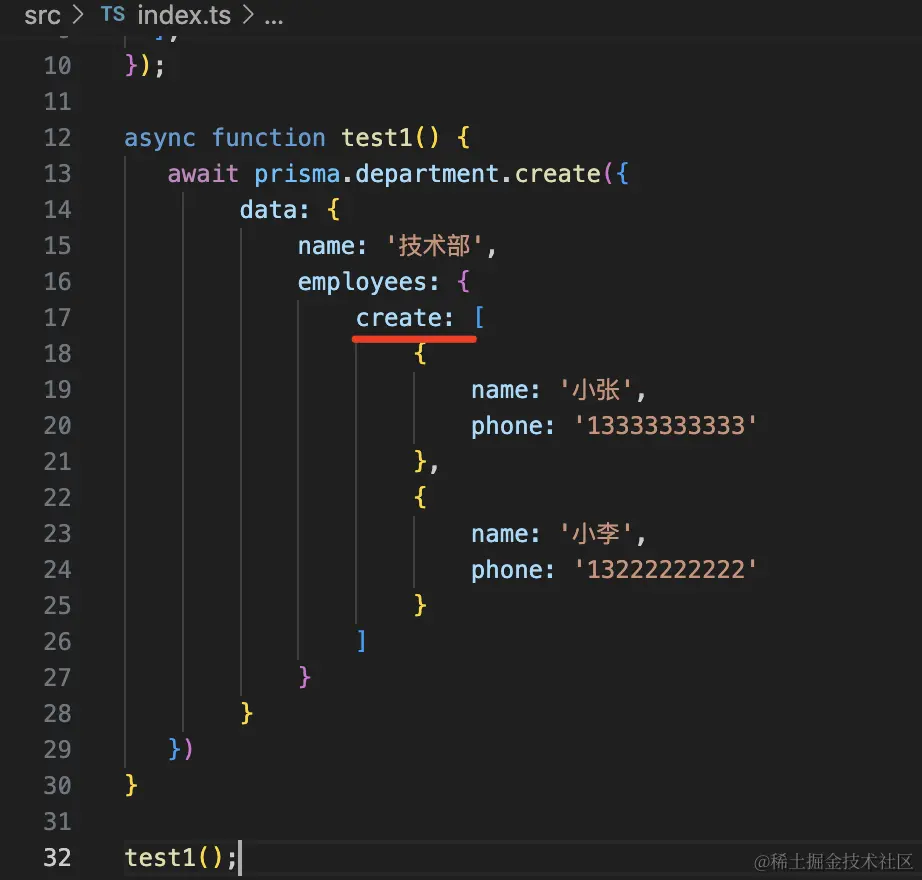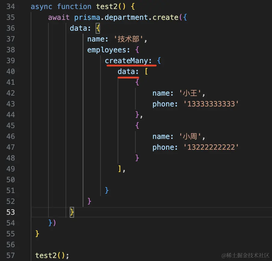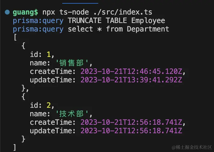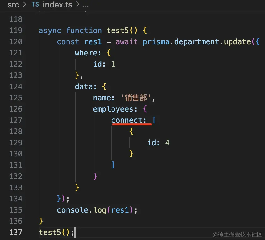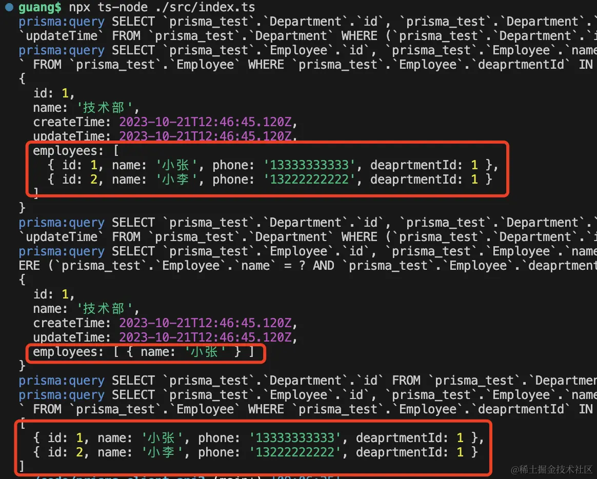 查询 department 的时候,通过 include 指定关联查询出 employees。