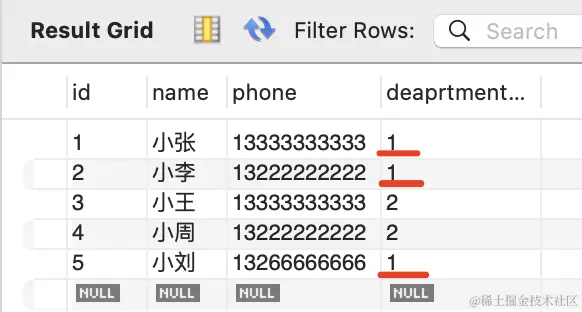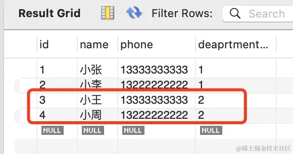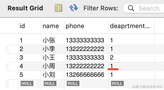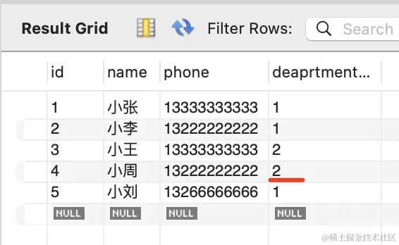 刷新可以看到,id 为 4 的 employee 关联的 department 就变了: