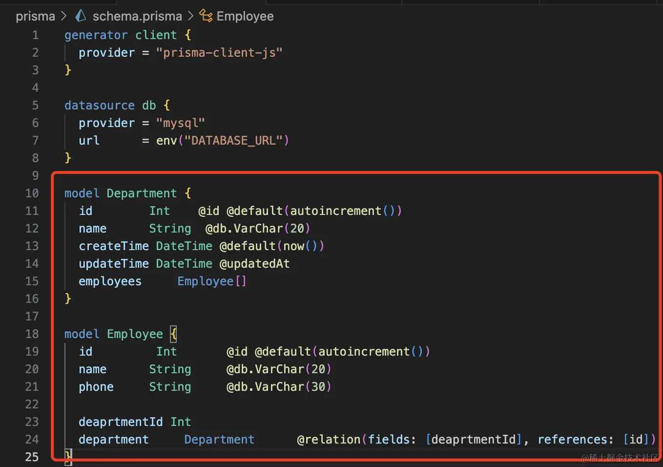 department Department @relation(fields: [deaprtmentId], references: [id])