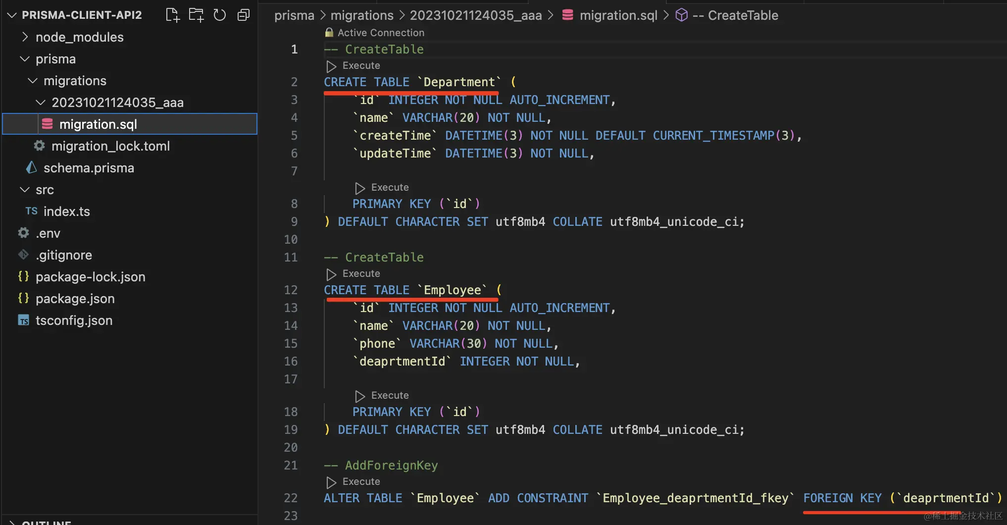 此外,Prisma 还可以直接执行 sql: