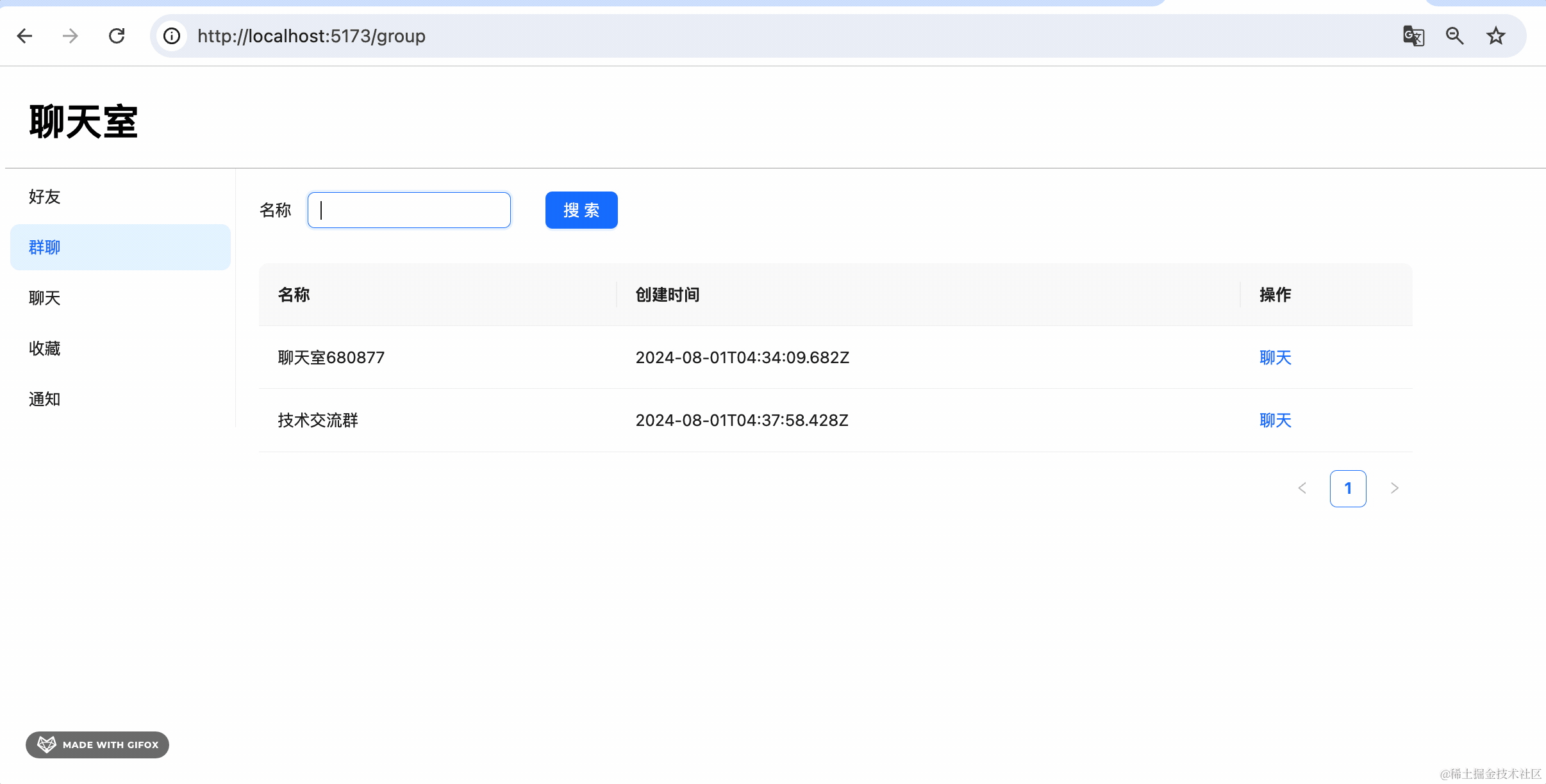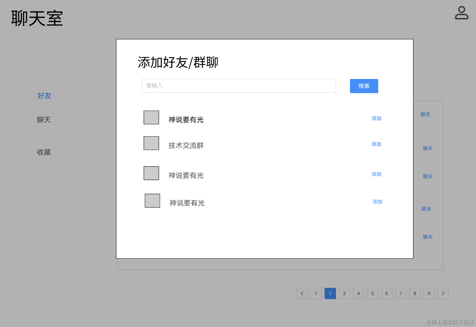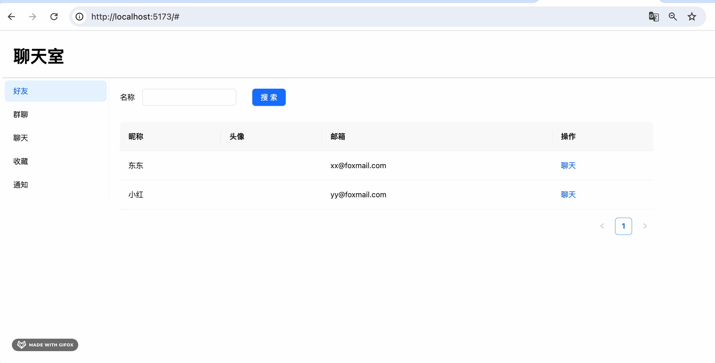 然后实现了好友列表和群聊列表,搜索框输入内容,点击搜索调用 list 接口,返回的数据设置到 table。