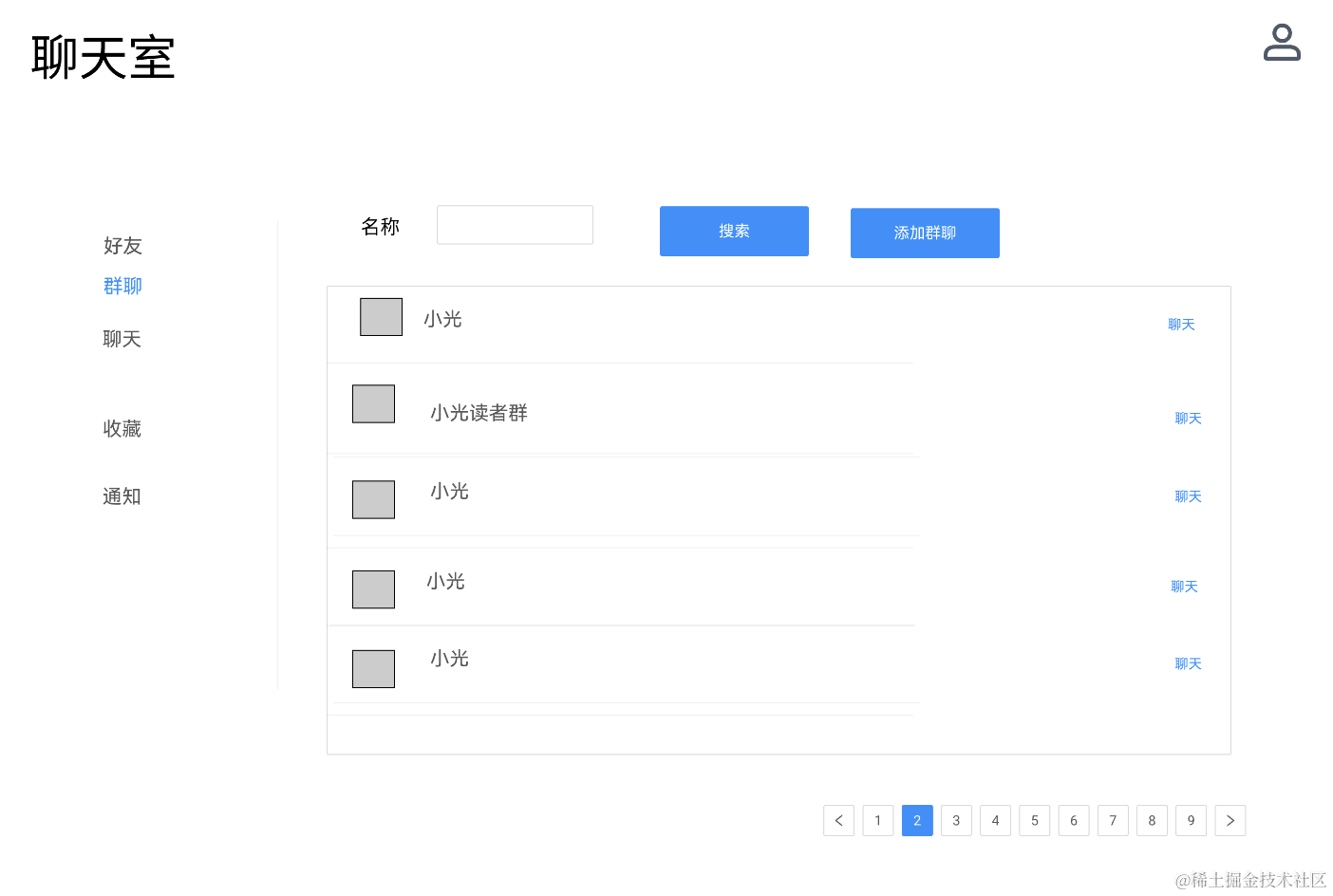 这节我们实现了好友和群聊的列表和搜索。