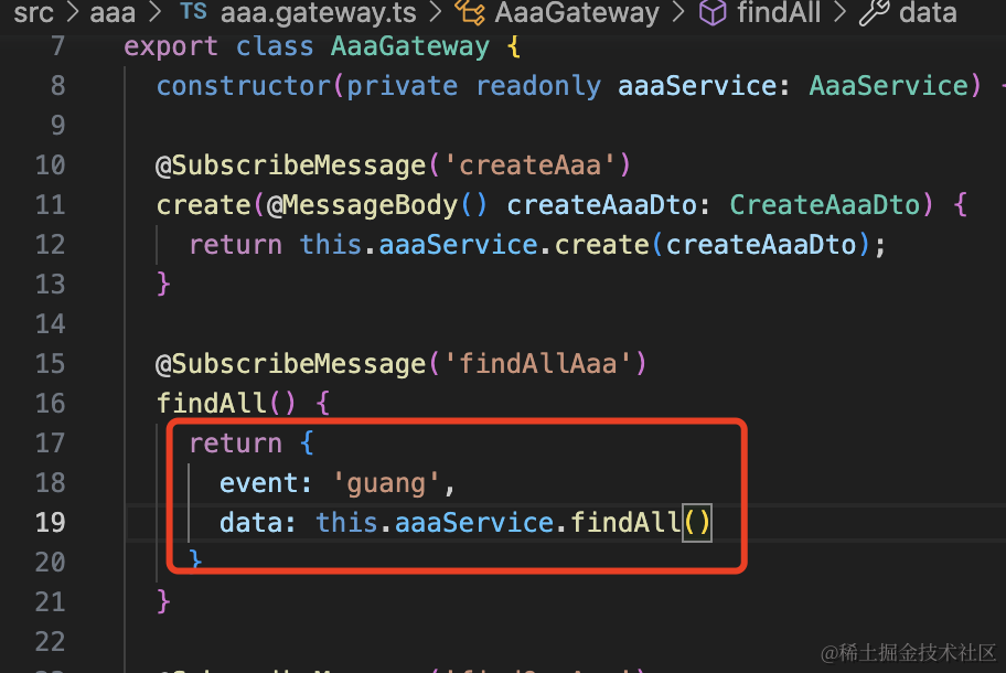 这时候原来的代码就收不到 findAll 返回的消息了: