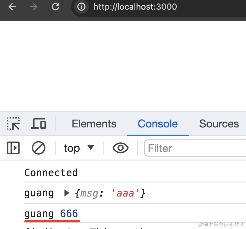 因为返回的消息是 guang,可以加一下这个事件的监听: