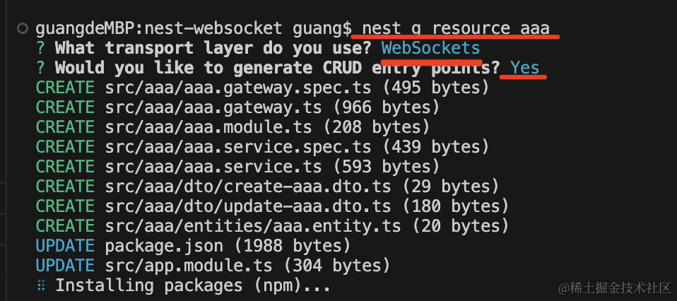 需要用到 @nestjs/websockets 和 @nestjs/platform-socket.io 包。