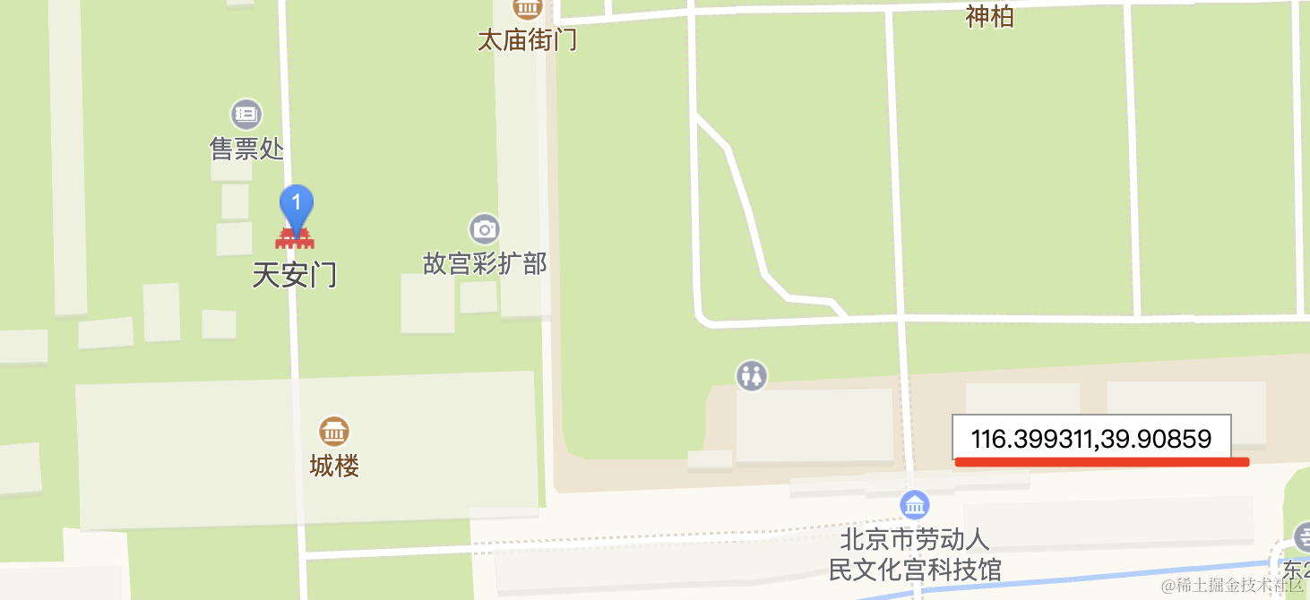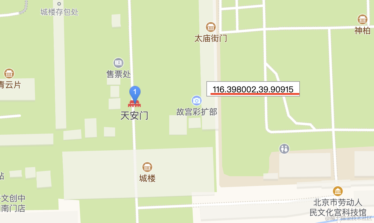 在天安门画了一个 circle,然后在文化宫科技馆画了一个 marker: