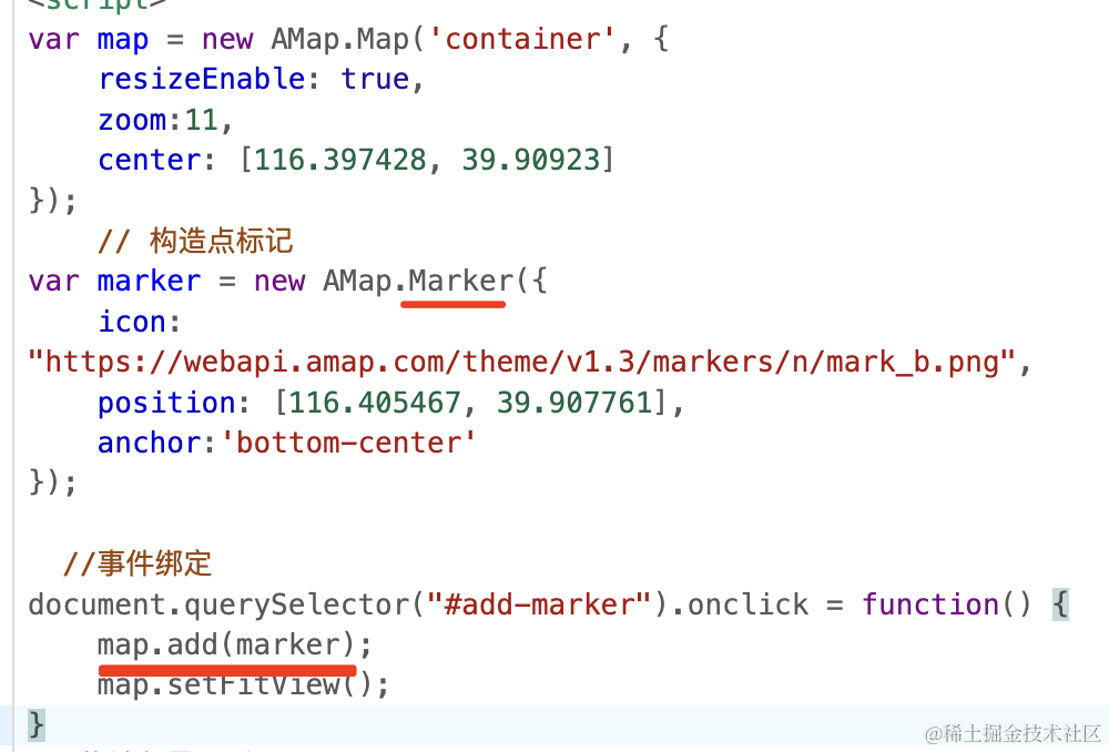 比如上面我们分别在地图上绘制了 marker 和 circle: