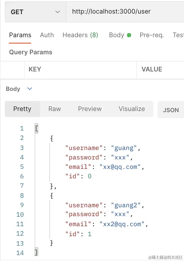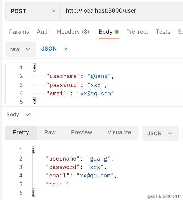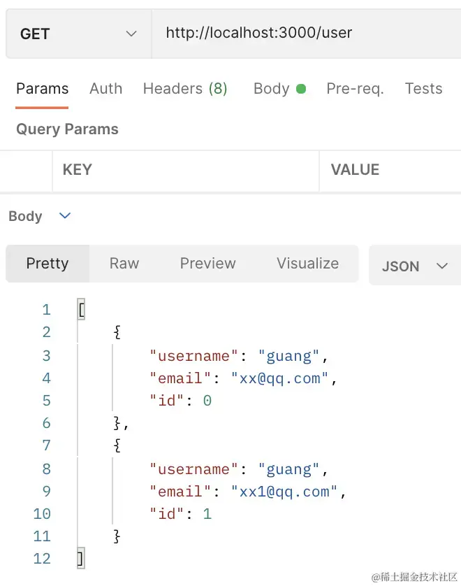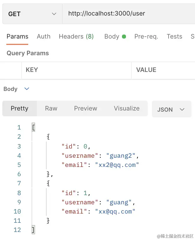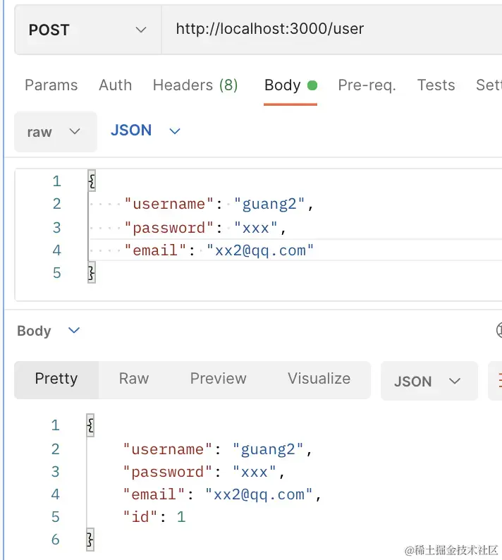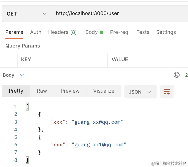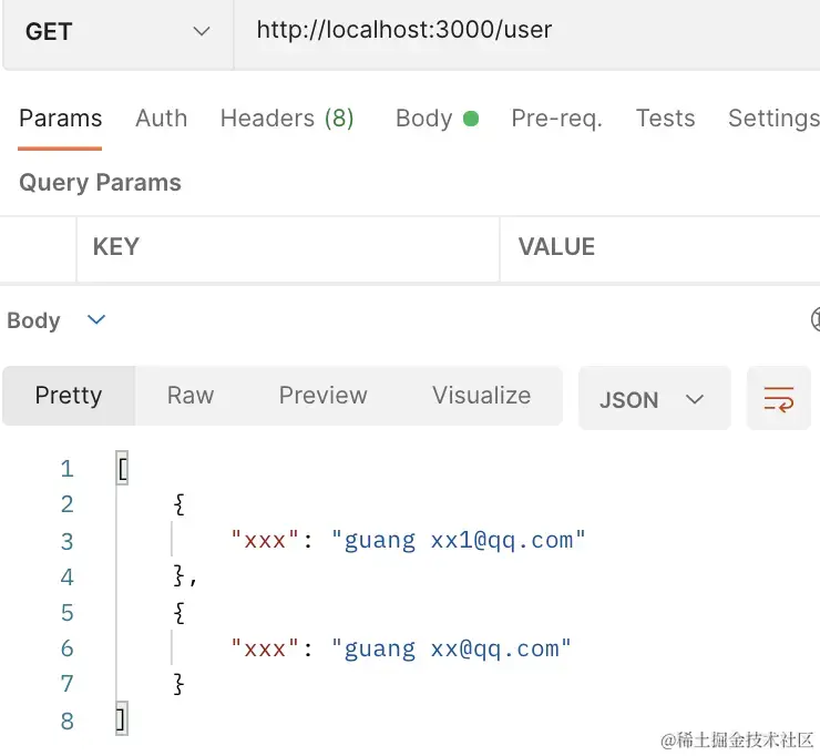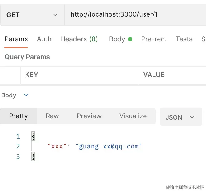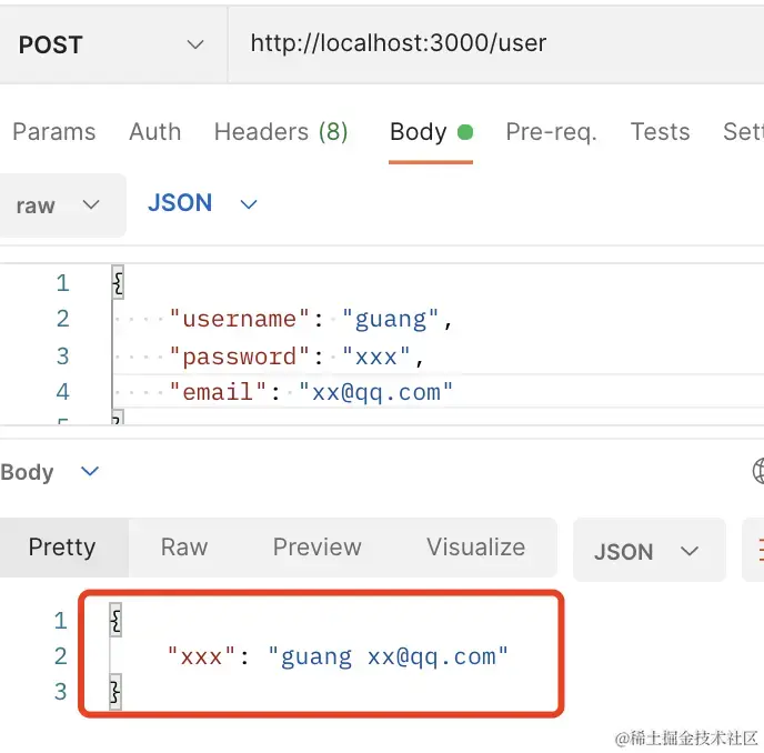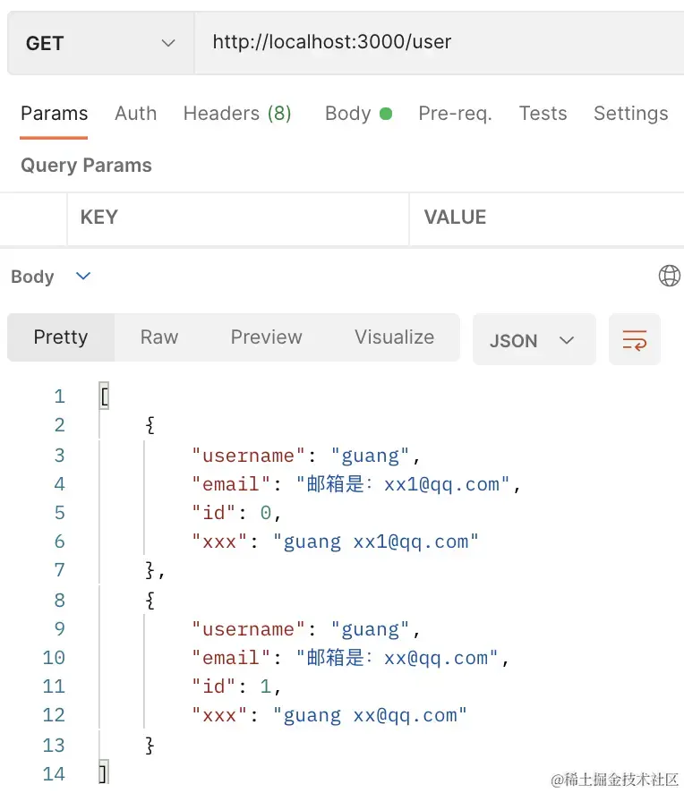 可以看到,返回的数据多了 xxx 字段,email 字段也做了修改: