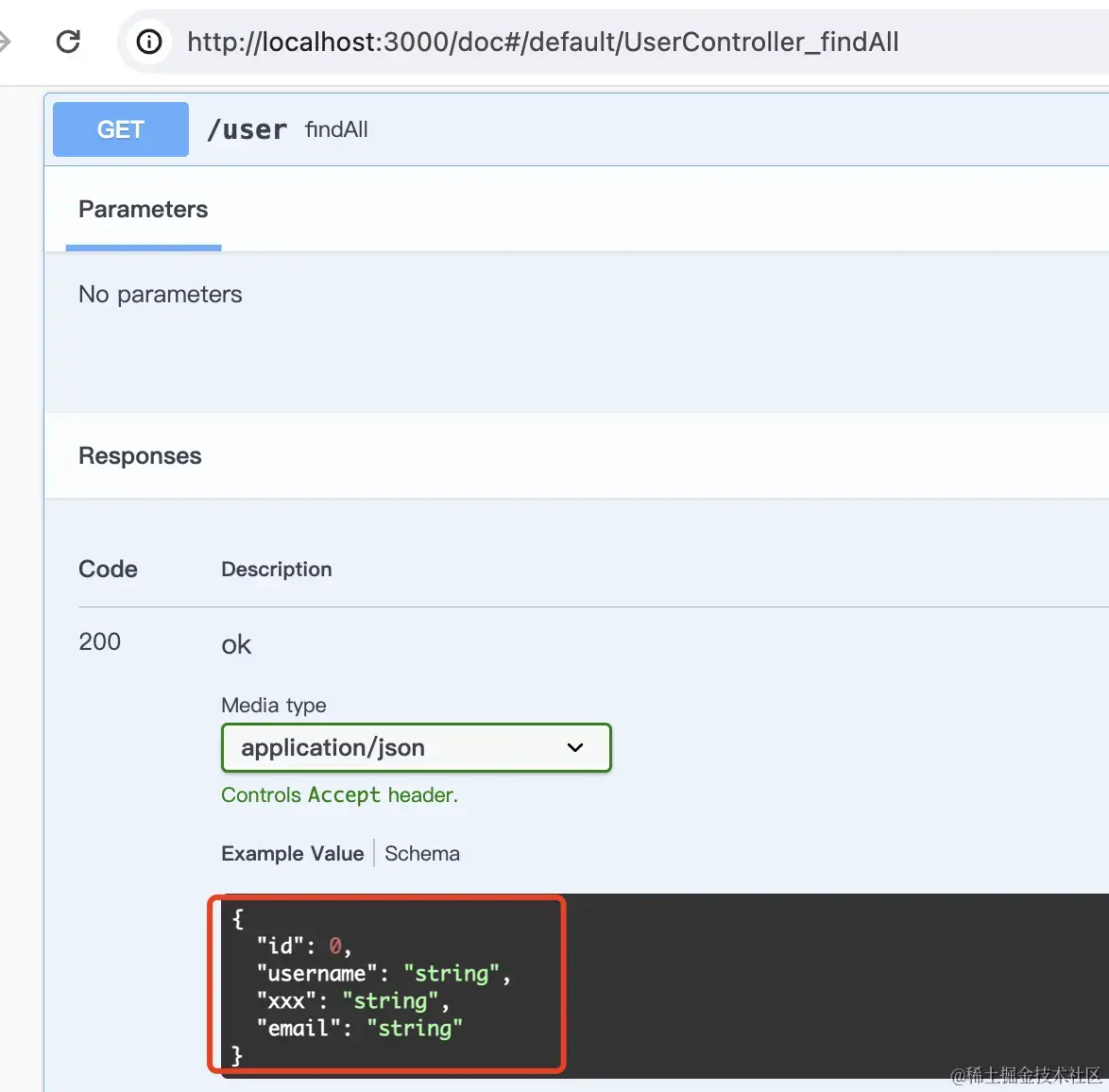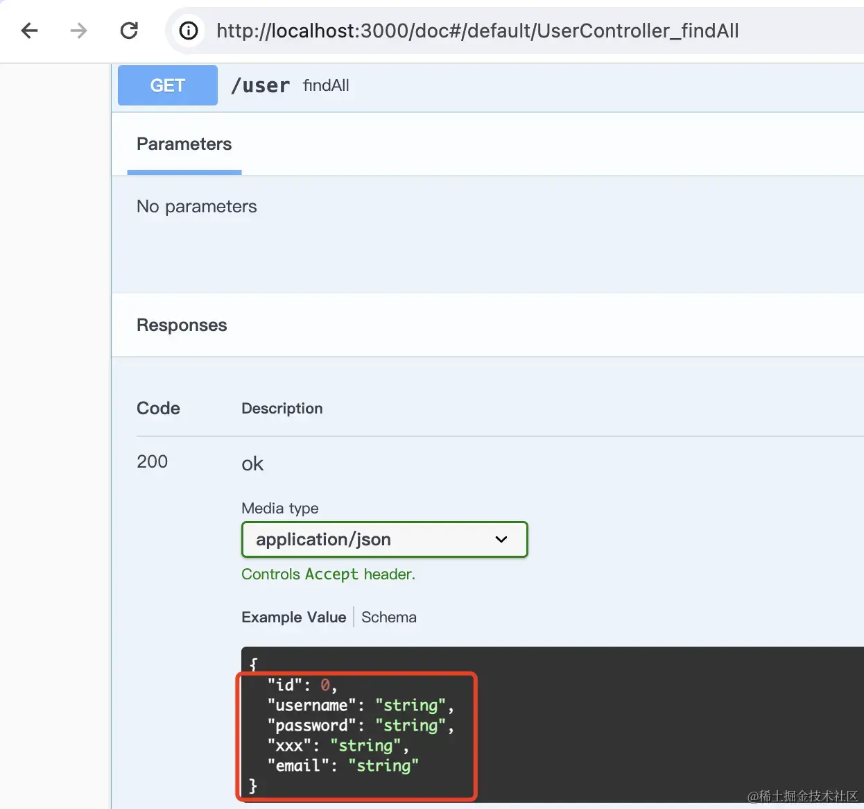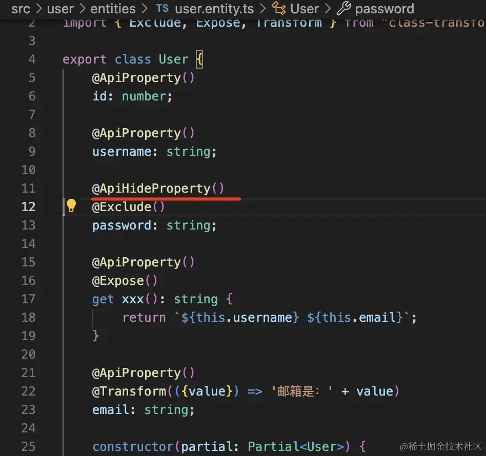注意,这里要用 @ApiHideProperty 把 password 字段隐藏掉。