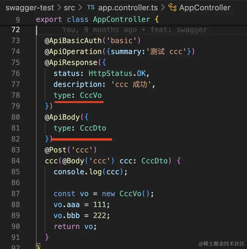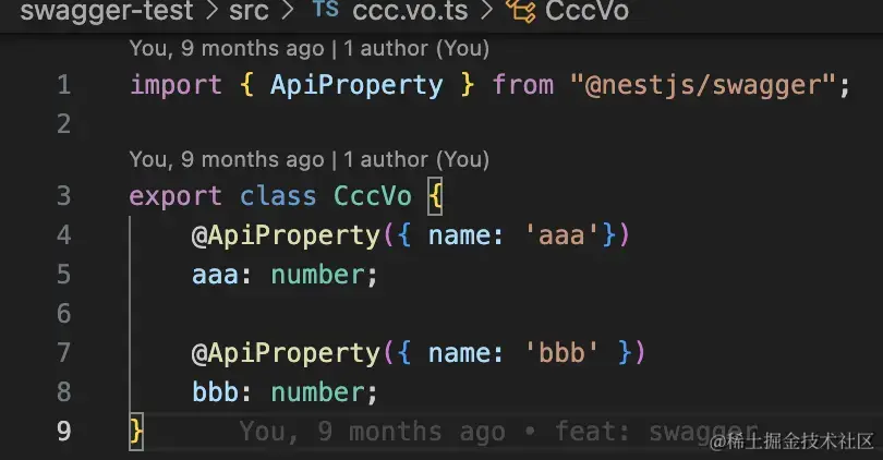 swagger 那节当返回对象的时候,我们都是创建了个 vo 的类,在 vo class 上加上 swagger 的装饰器: