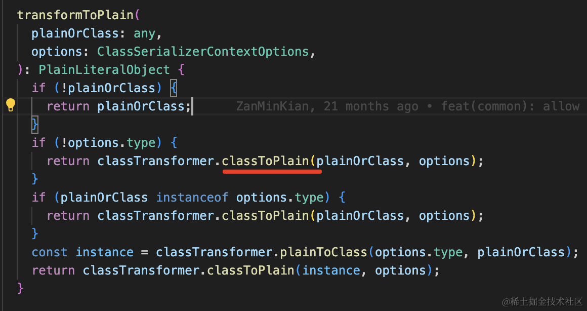在 transformToPlain 方法里,调用 classToPlain 创建对象。