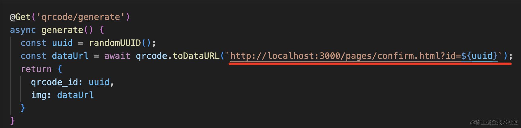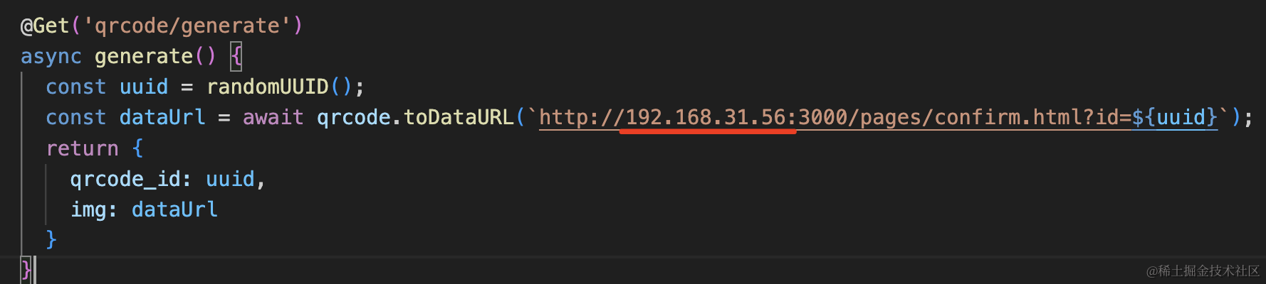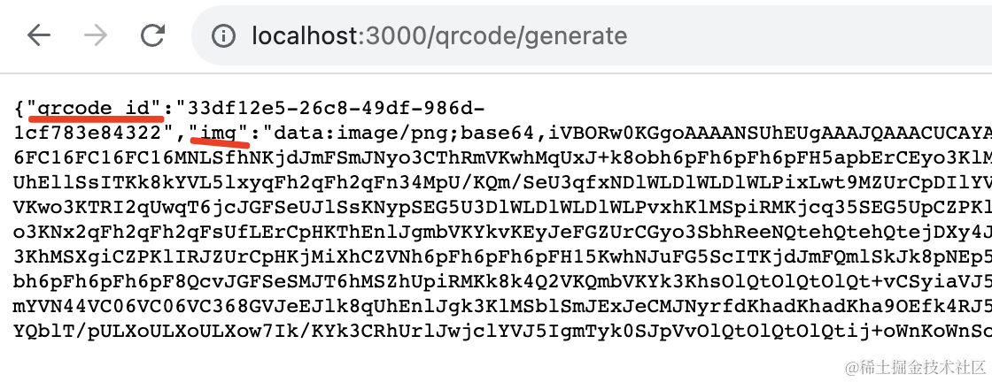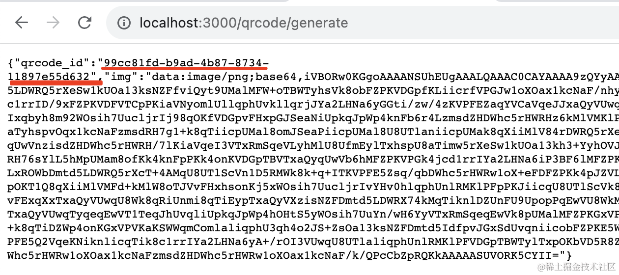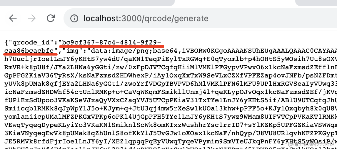 然后用 qrcode 生成二维码,只不过转成 base64 返回。