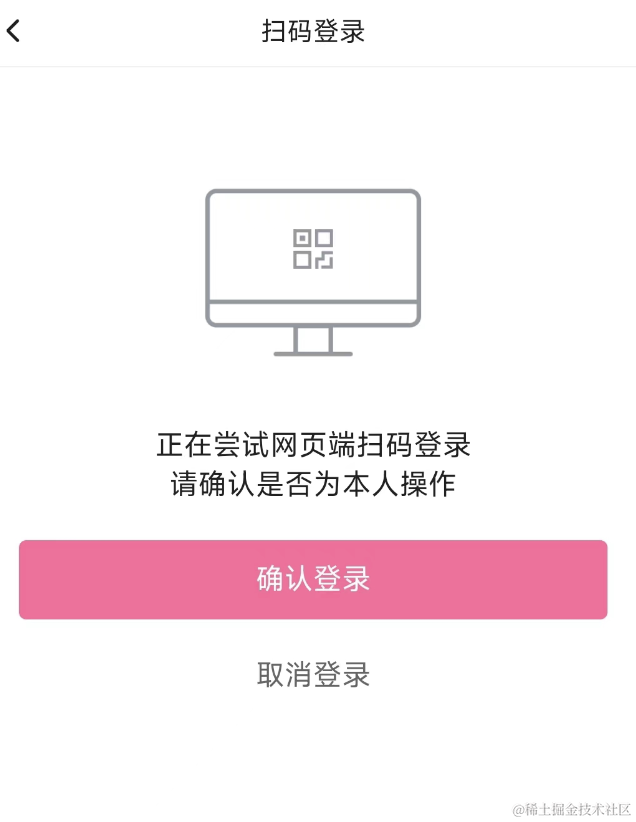 流程是在 pc 选择扫码登录的方式,用 APP 扫码,在 app 上登录之后进入登录确认页面。