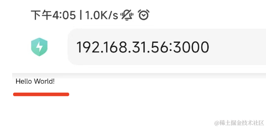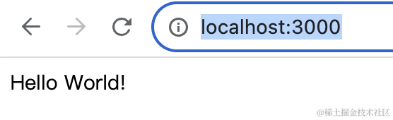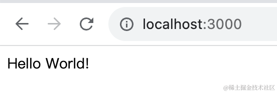 浏览器访问 http://localhost:3000 就可以可以看到 hello world,就代表服务跑起来了: