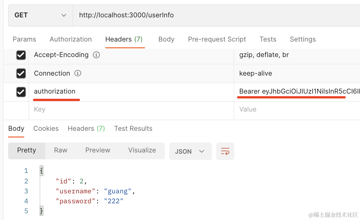 我们加上 authorization 的 header,访问下 userInfo 接口: