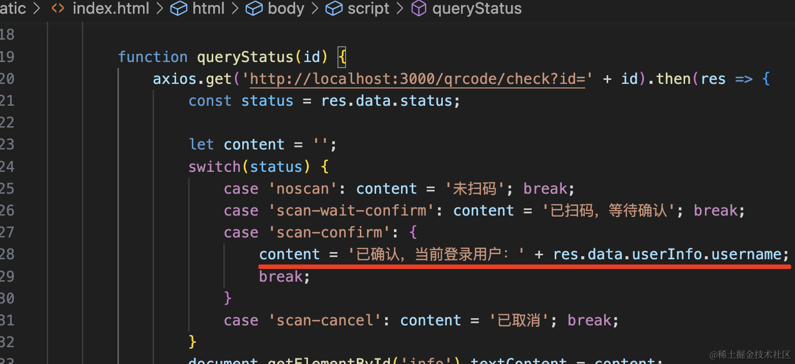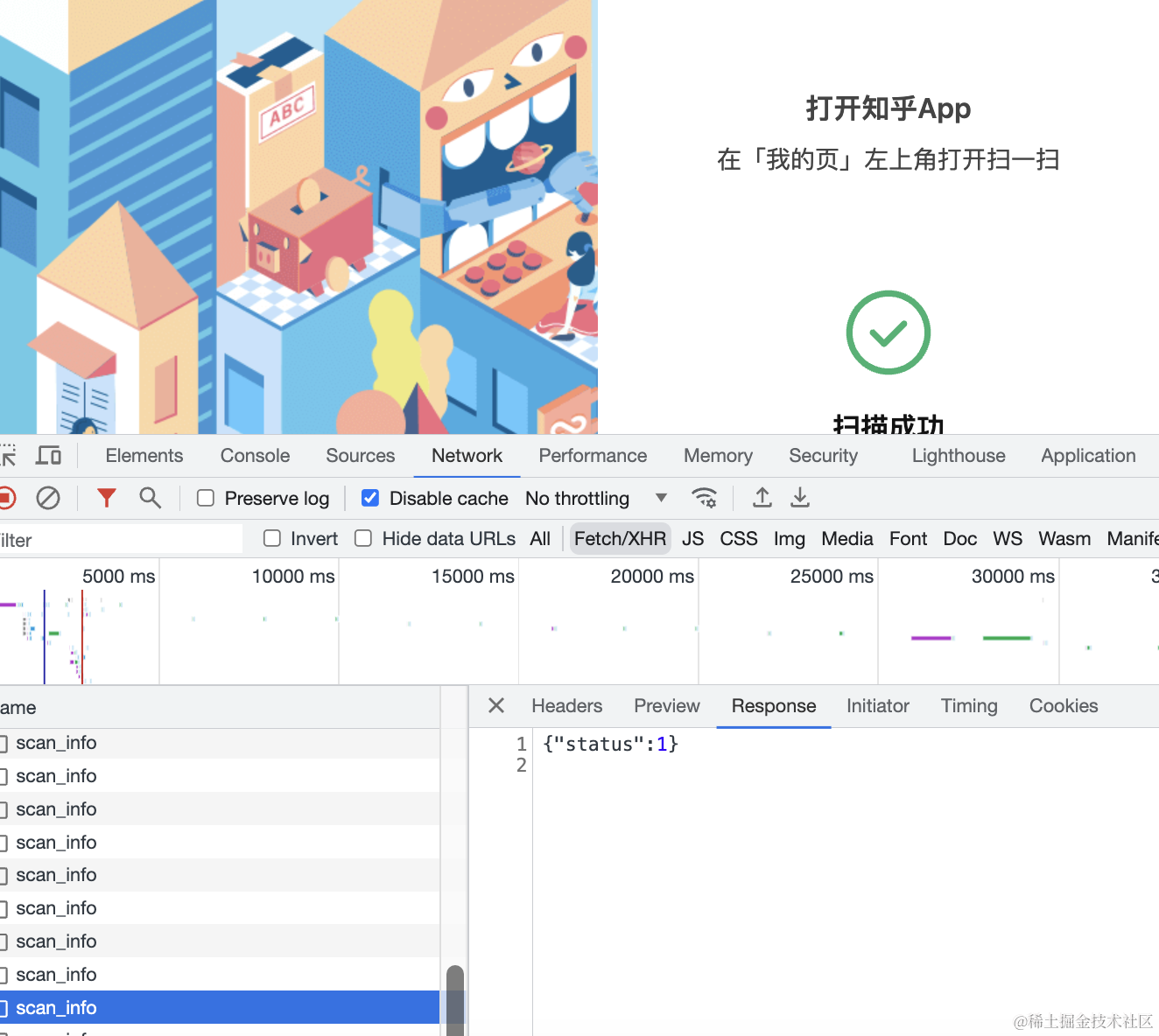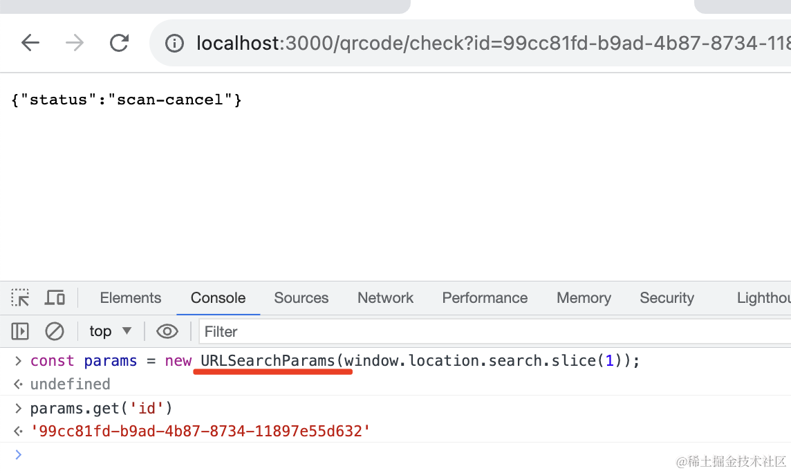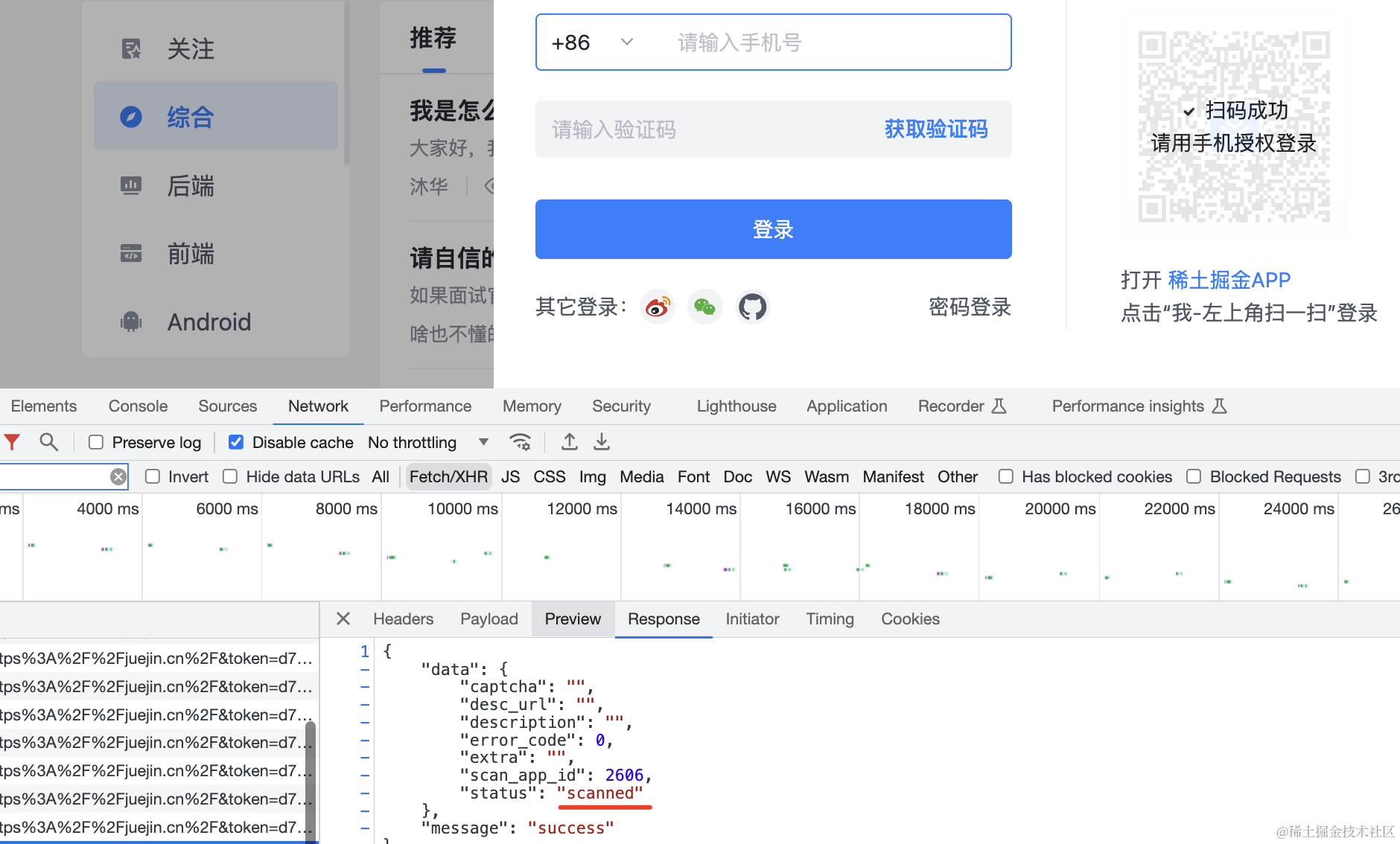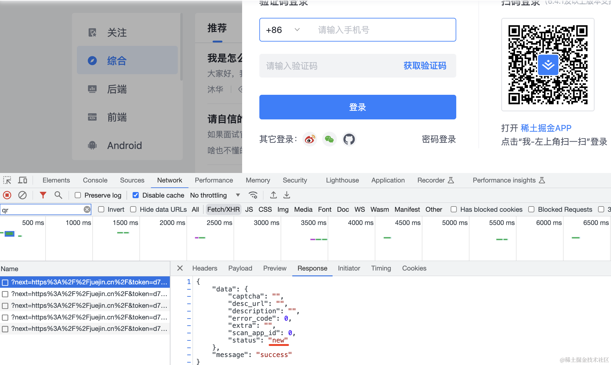 还有个 qrcode/check 接口,会返回 redis 里的二维码状态,浏览器里可以轮询这个接口拿到二维码状态。