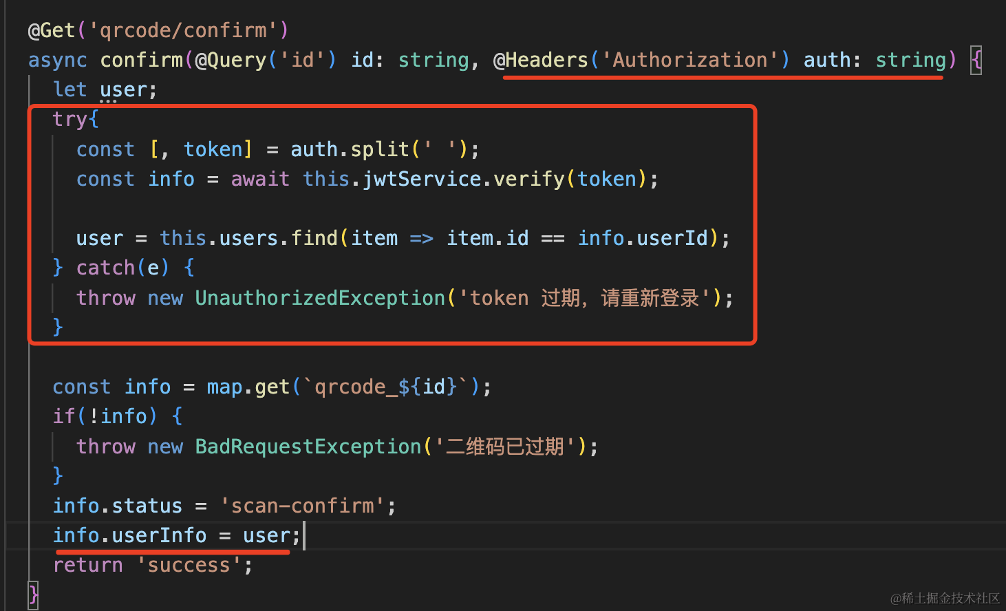 然后我们在 qrcode/confirm 接口里把 token 取出来,拿到其中的用户信息,保存到 map 里: